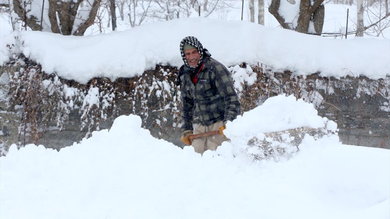 Vatandaşlar, evlerinin etrafında biriken karı temizledi.