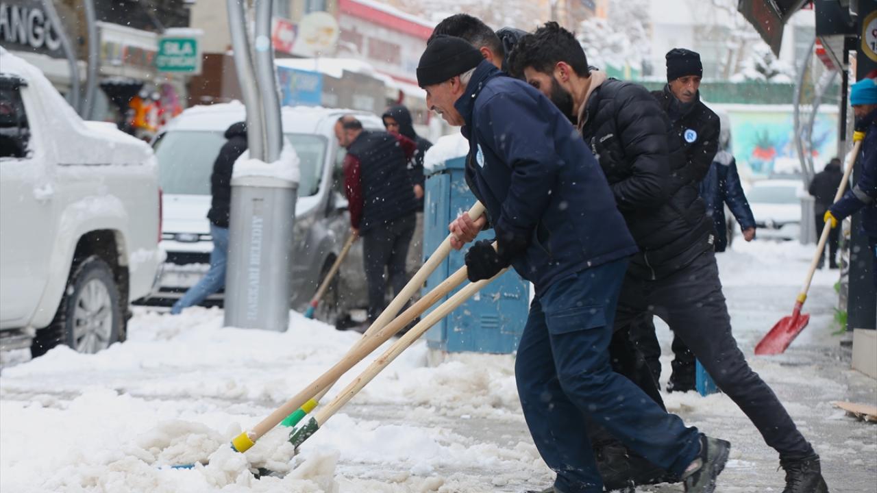 Muş`ta etkili olan kar yağışının ardından kent merkezi beyaza büründü.