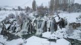 Van`da etkili olan kar yağışının ardından Muradiye Şelalesi`nin çevresi karla kaplandı.