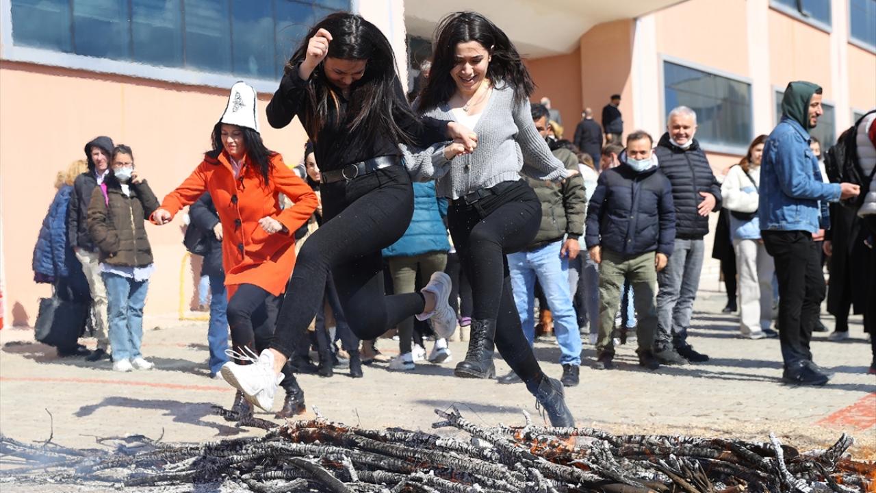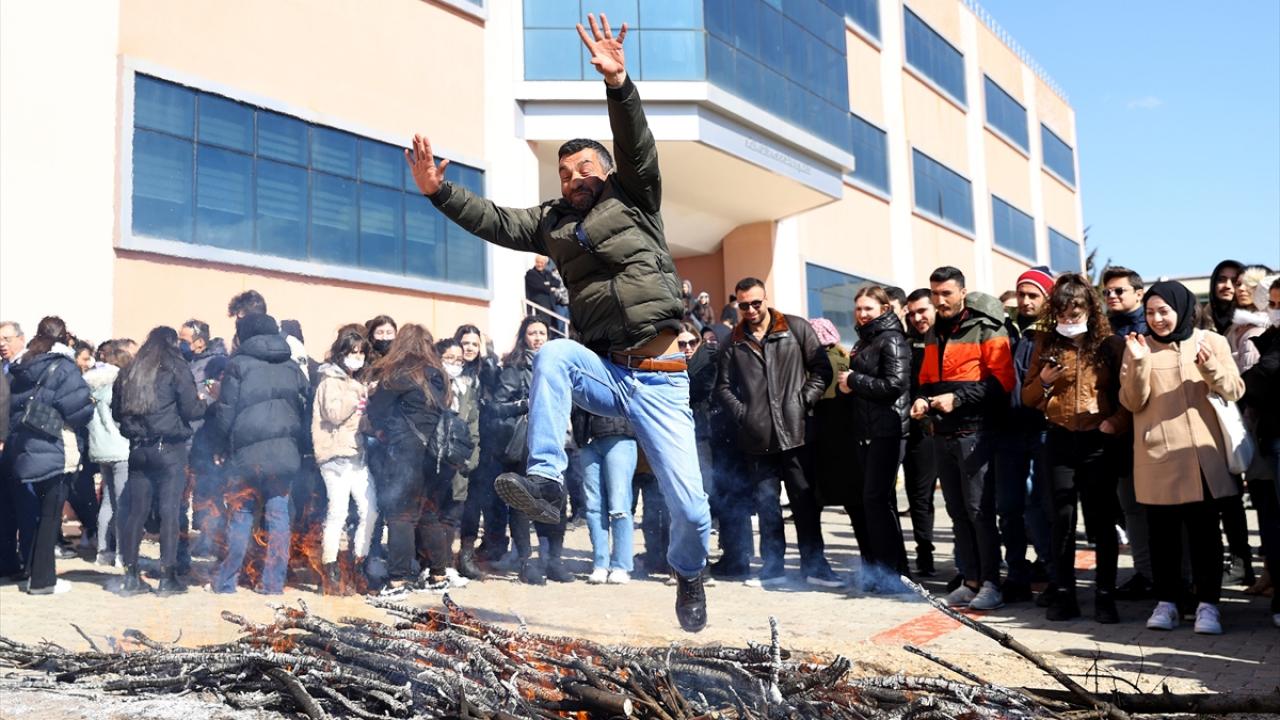 Trakya Üniversitesinde yapılan kutlamada, öğrenciler ve akademisyenler nevruz ateşinden atladı.