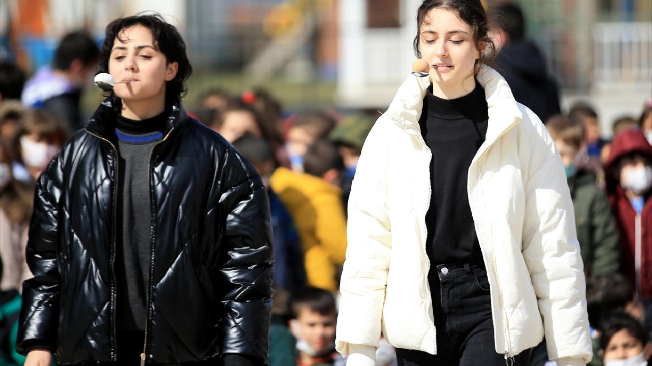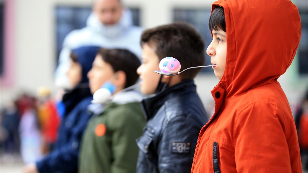 Öğrenciler arasında yumurta taşıma yarışması düzenlendi.