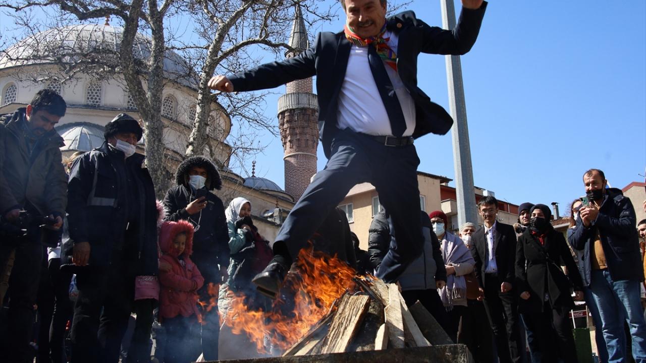 Programda, Vali Şehmus Günaydın ve protokol üyeleri, nevruz ateşinin üzerinden atladı.