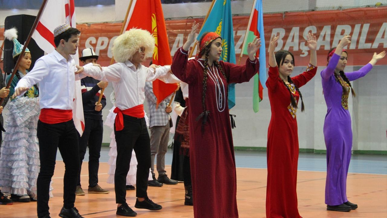 Halk oyunu gösterilerinin sunulduğu etkinliğe yöresel kıyafetler ve kendi ülke bayraklarıyla katılan Türk Cumhuriyetleri öğrencileri, türkü söyledi ve halk oyunu gösterisi sundu.