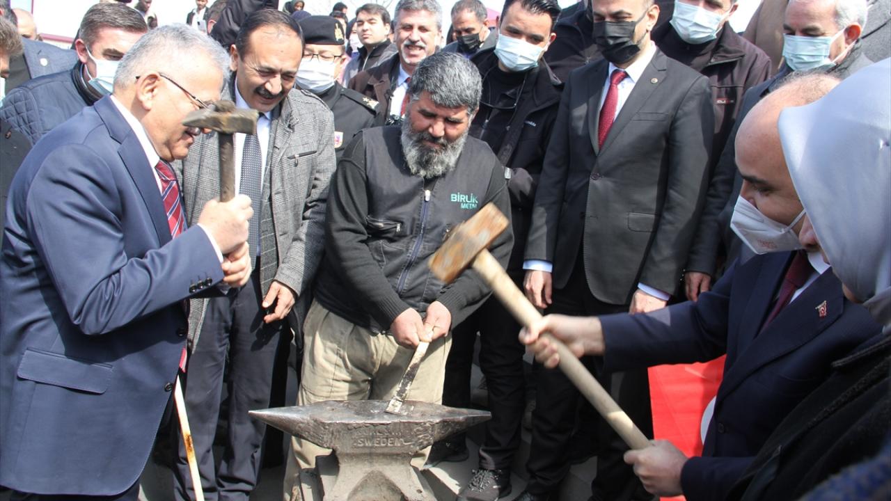 Programda, Vali Şehmus Günaydın (sağda) ve Büyükşehir Belediye Başkanı Memduh Büyükkılıç (solda) demir dövdüler.