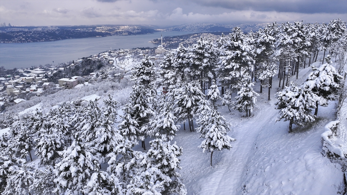 İstanbul`da etkili olan kar yağışının ardından beyaza bürünen Beykoz ilçesi havadan görüntülendi.