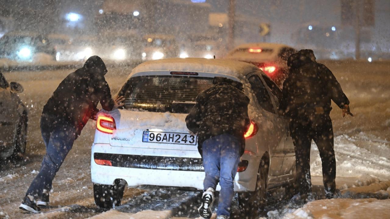 Akşam saatlerinde başlayan kar yağışına yolda yakalanan sürücüler, zor anlar yaşadı.