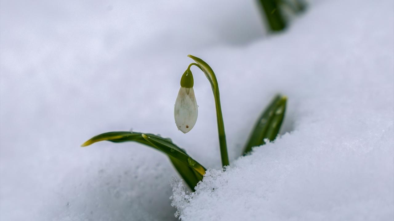 Beyaz örtüyle kaplanan bazı bölgelerde kar altından çıkan kardelenler de görüntülendi.