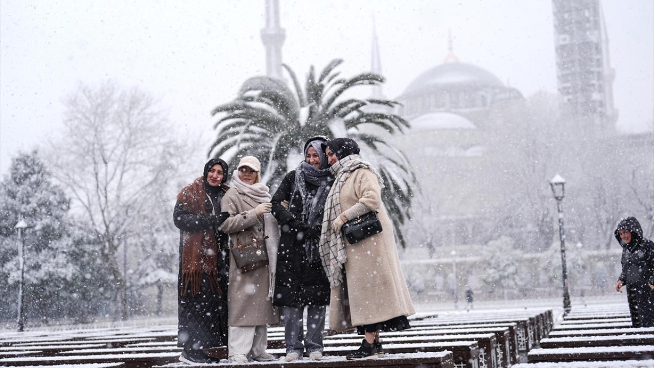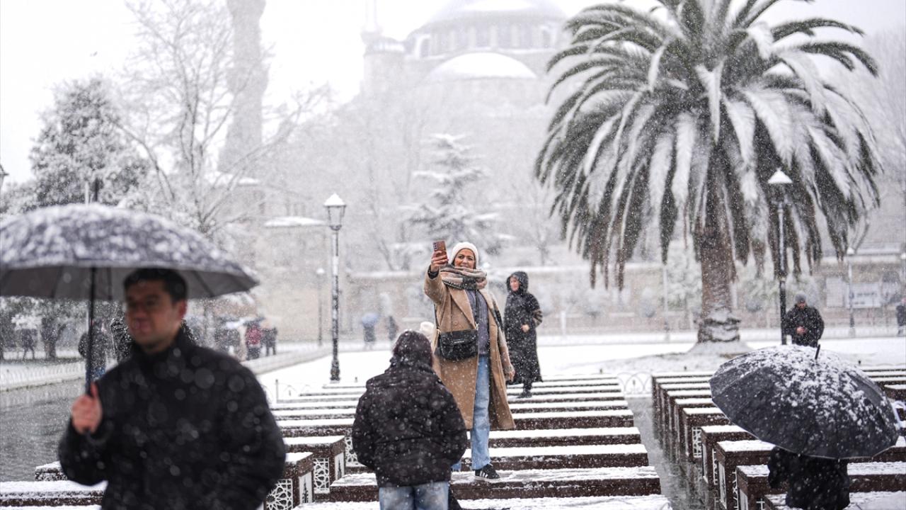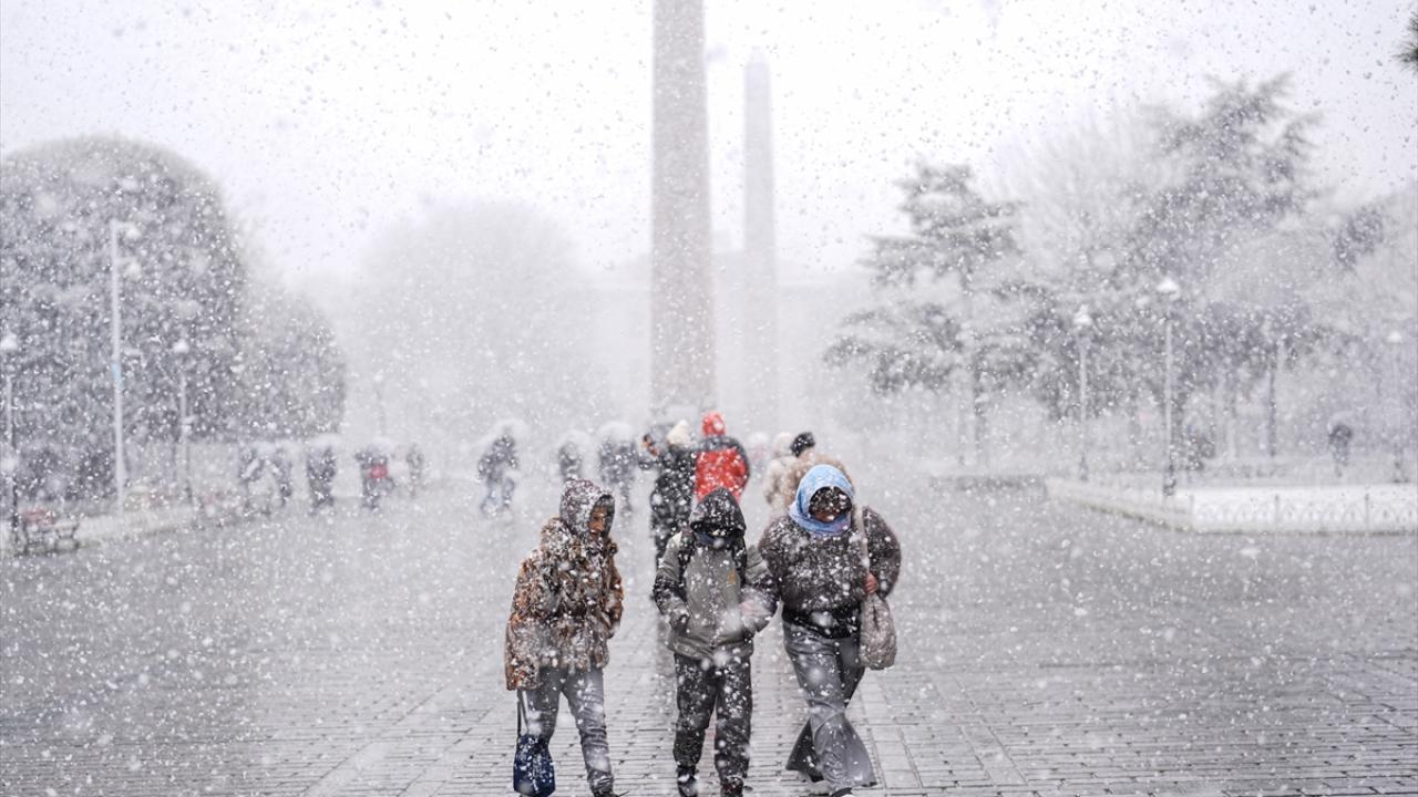 İstanbul`da kar yağışı, Sultanahmet Meydanı`nda etkili oldu.