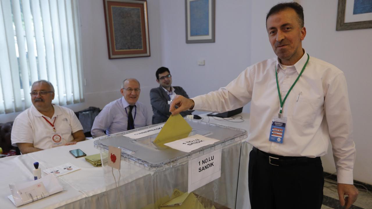 Seçmenler, Türkiye`nin Doha Büyükelçiliği`nde kurulan sandıkta oy kullandı.