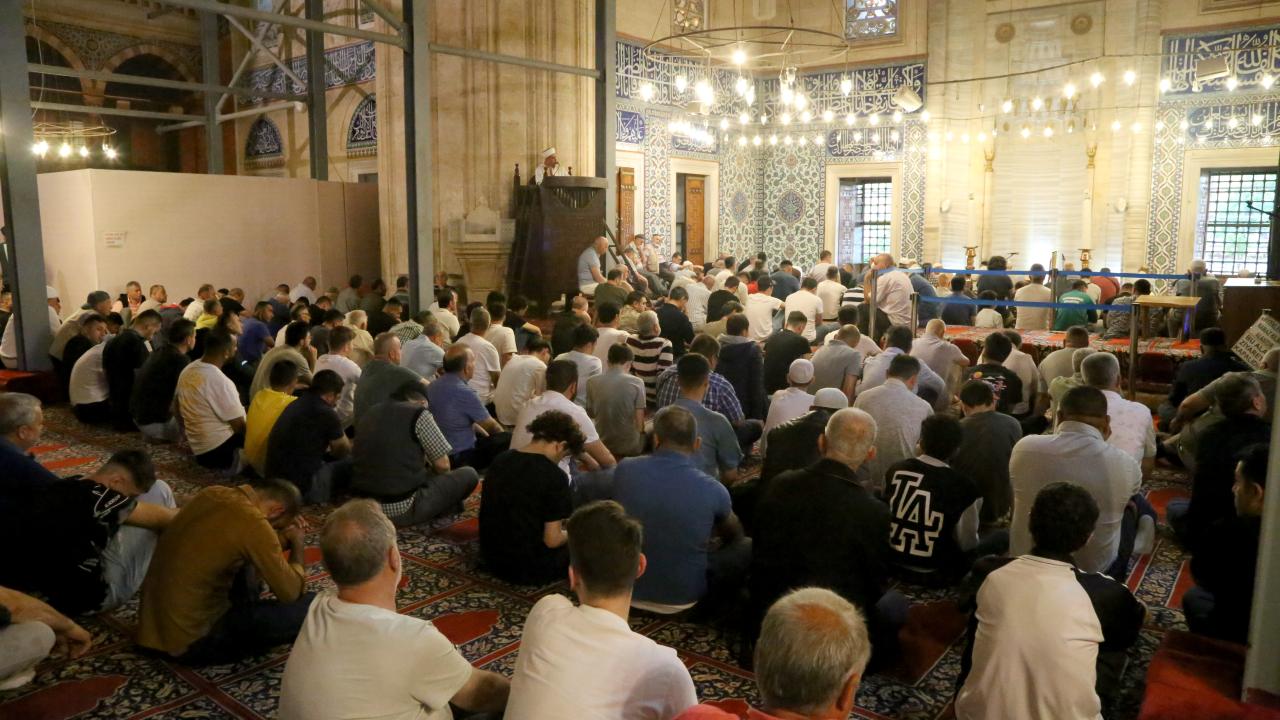 Edirne`de vatandaşlar Kurban Bayramı dolayısıyla Mimar Sinan`ın ustalık eseri Selimiye Camii`ni doldurdu.