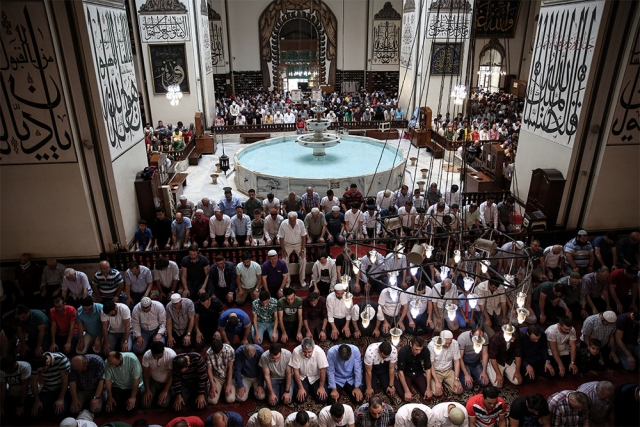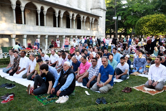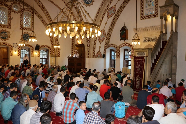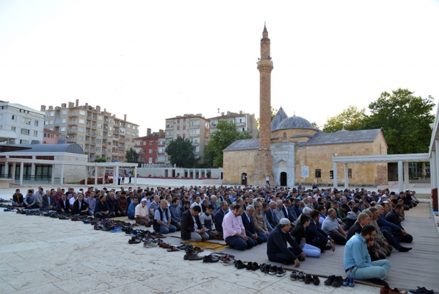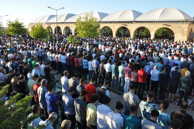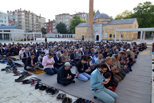 Vatandaşlar Ramazan Bayramı namazı için sabahın erken saatlerinde kentteki camilere akın etti. Namazdan sonra birbirleriyle bayramlaştı.
