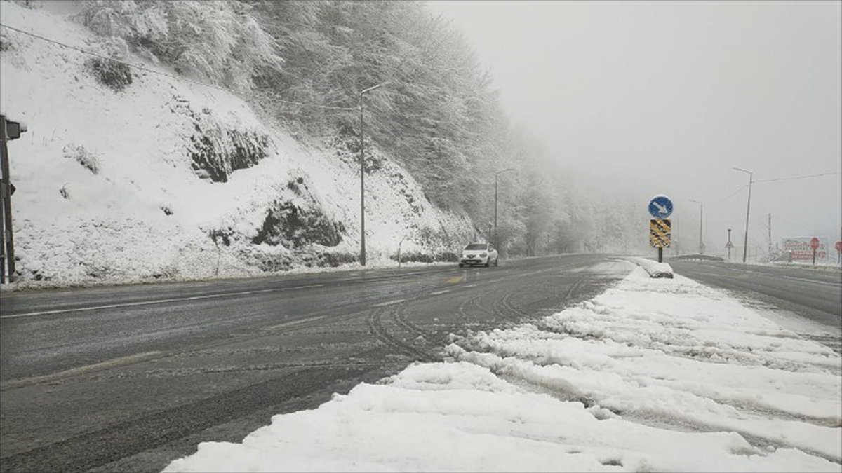 Bartın- Kastamonu yolunun 1030 rakımlı Soğucaksu geçidinde, kar yağışı etkili oldu.