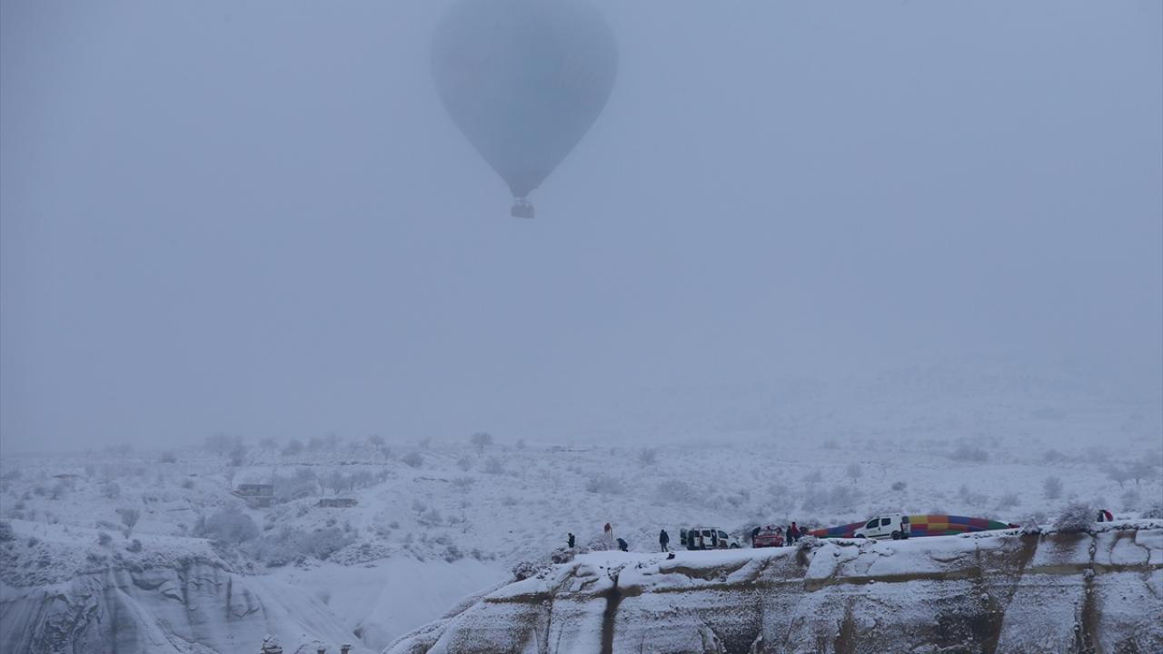 Doğal, tarihi ve kültürel zenginlikleri ile her yıl yüzbinlerce turistin ziyaret ettiği Kapadokya bölgesinde sabah yer yer etkili olan sis, karın ortaya çıkardığı görünümle bütünleşince ortaya güzel görüntüler çıktı.
