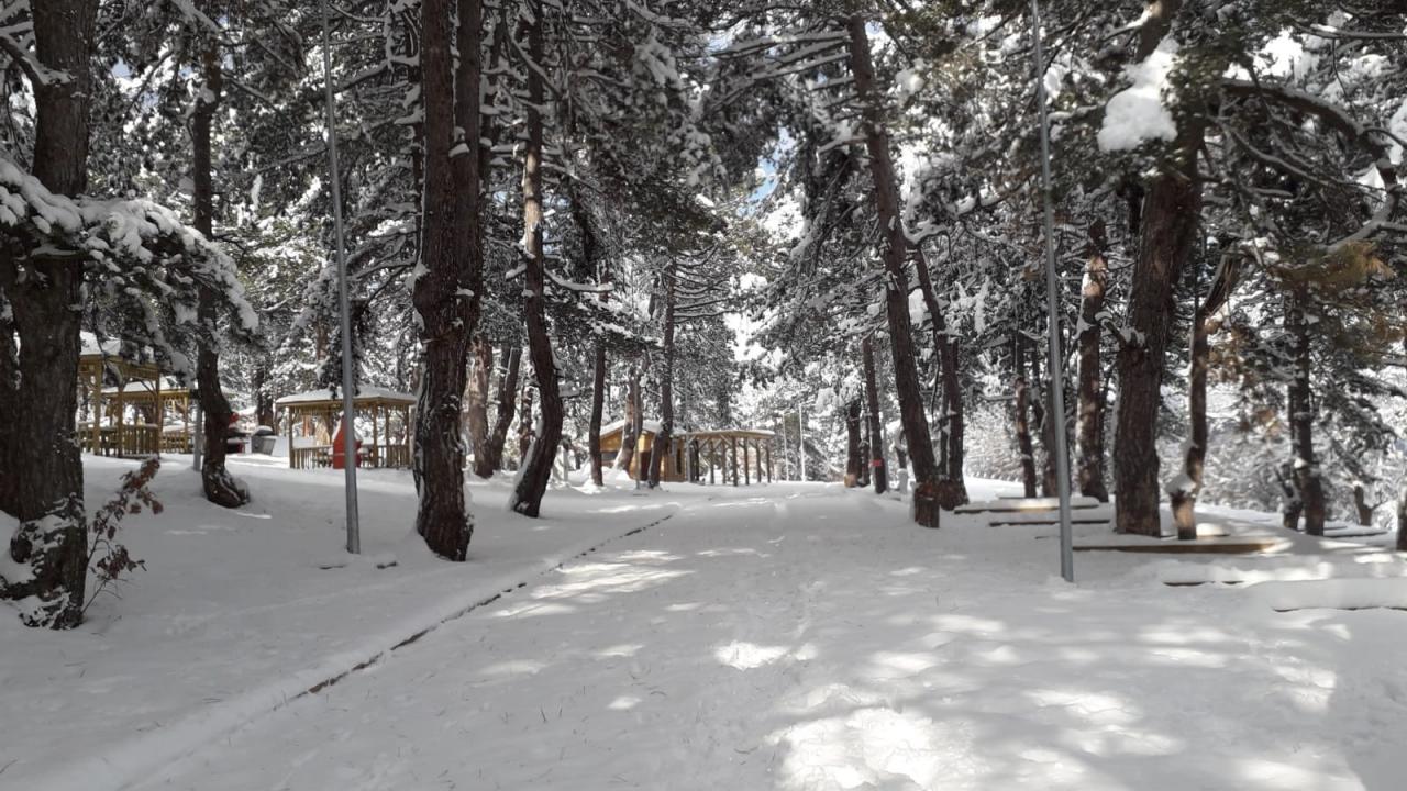 Bilecik’in gözde mesire alanlarından Küçükelmalı Tabiat Parkı kar yağışının ardından beyaza büründü.