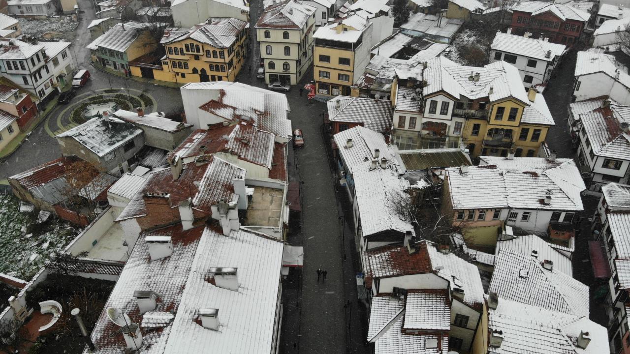 Eskişehir’de sabah saatlerinde başlayan kar yağışı, Odunpazarı`nda bulunan dükkan ve evlerin çatılarını beyaza bürüdü.