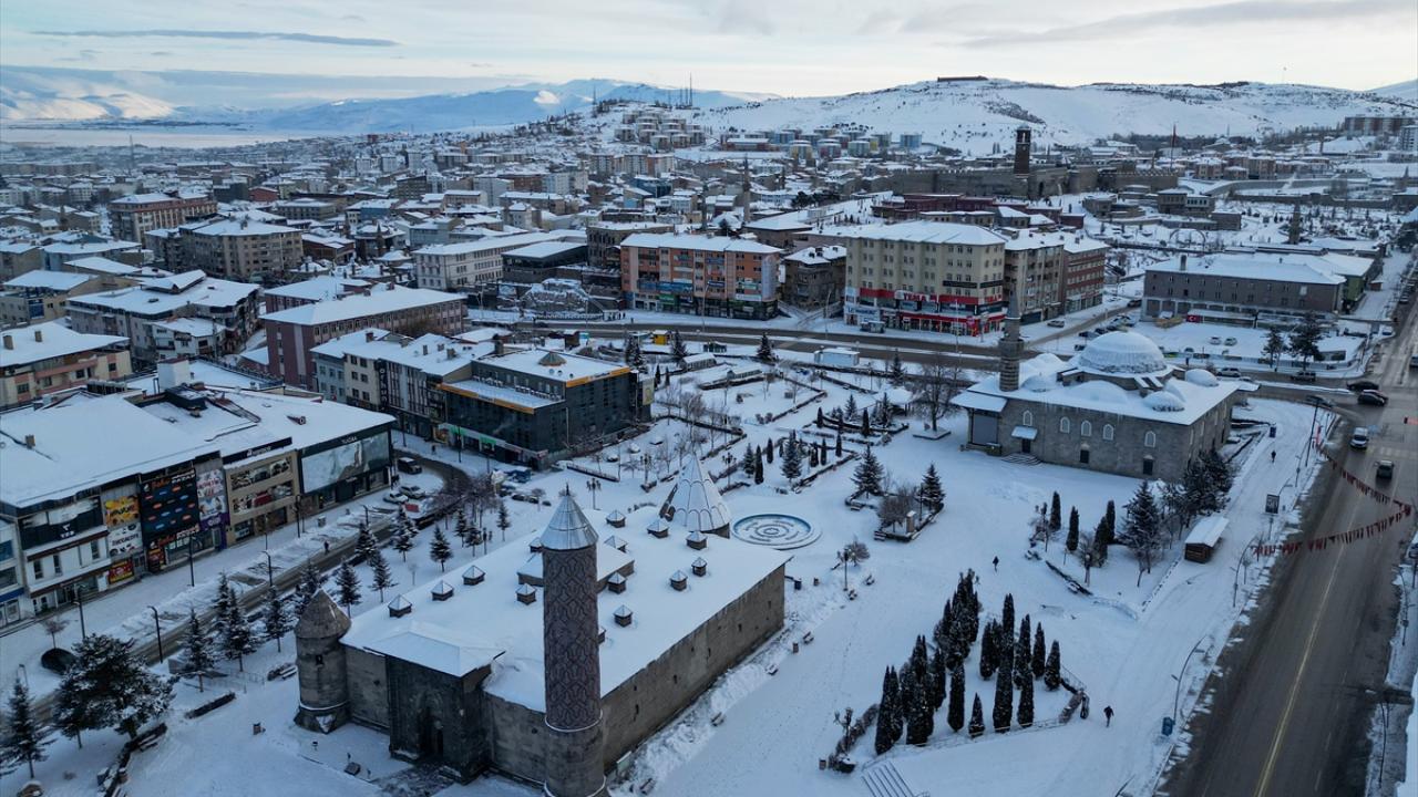Bitlis`te etkili olan kar sonrası kent merkezi beyaza büründü.