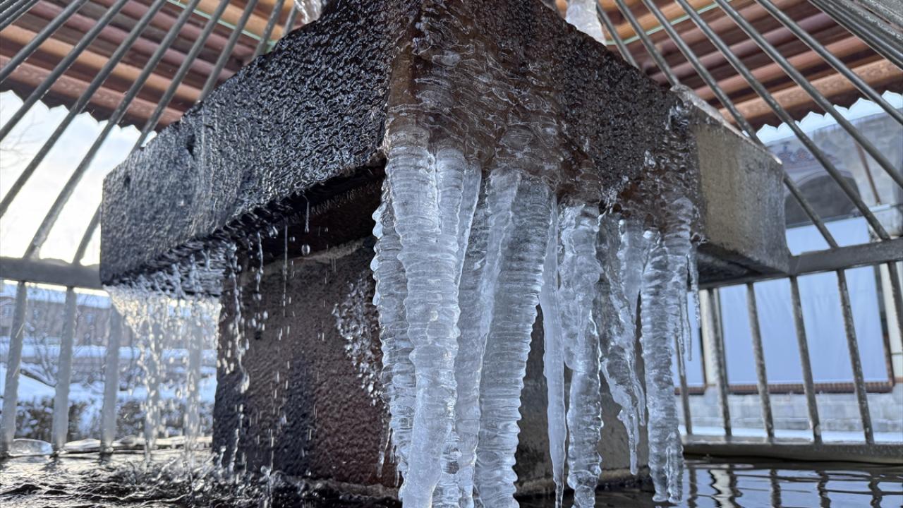 Kentteki şadırvanlar soğuk havanın etkisiyle buzla kaplandı.