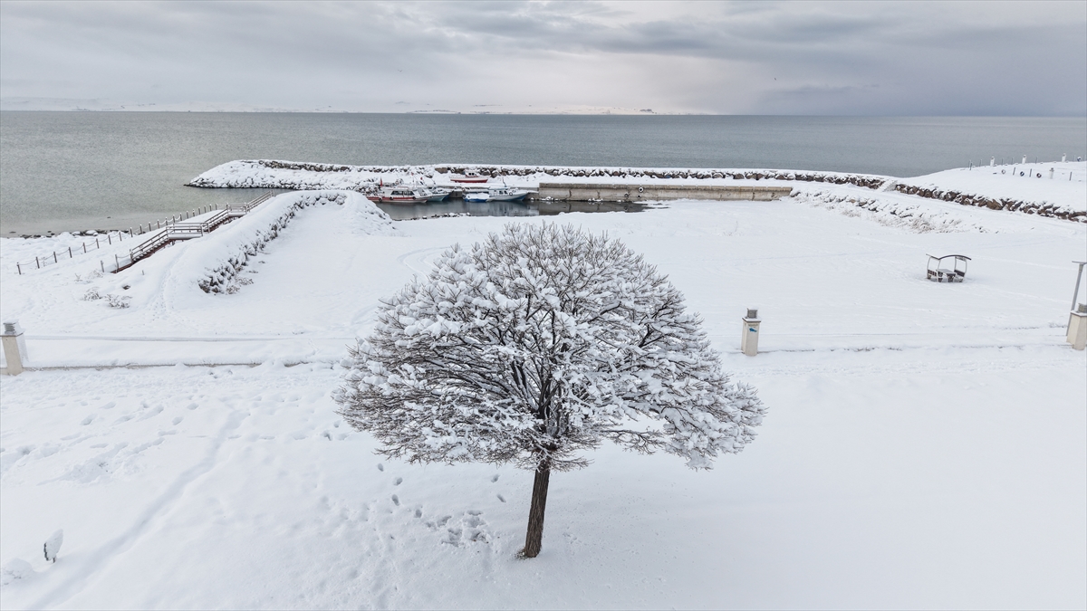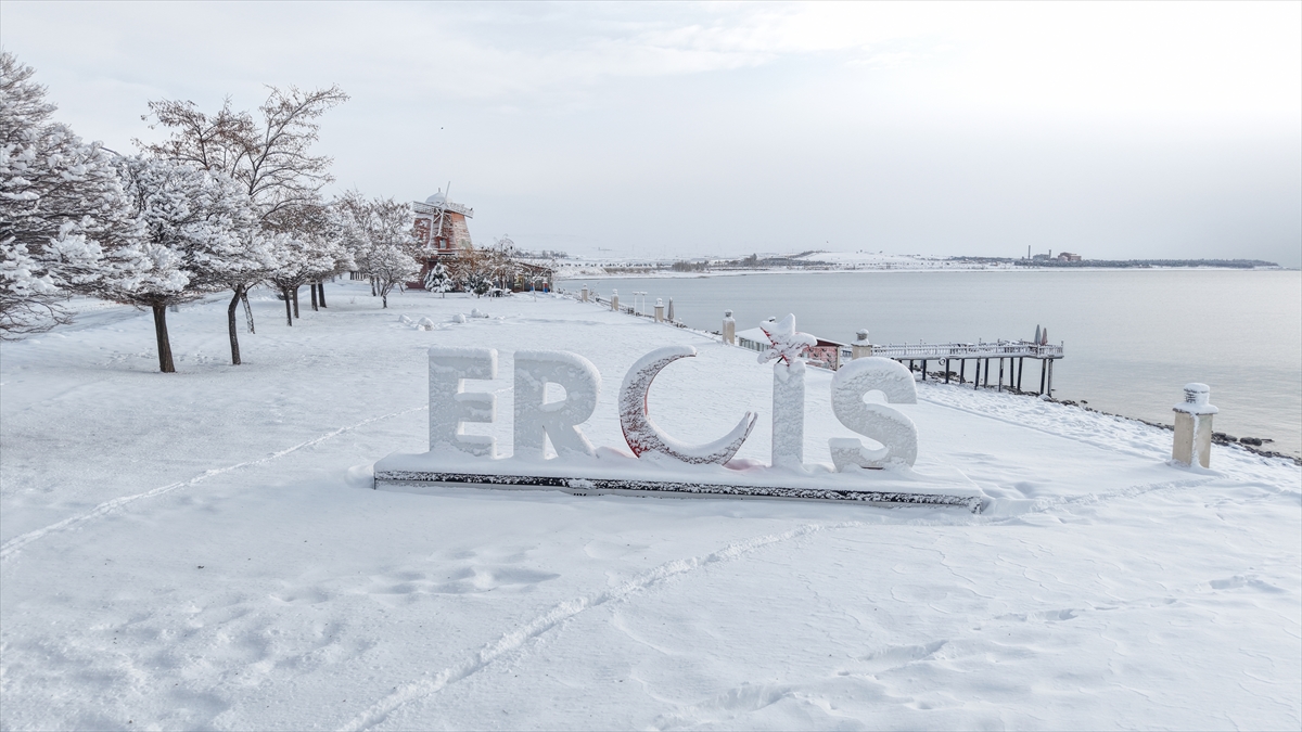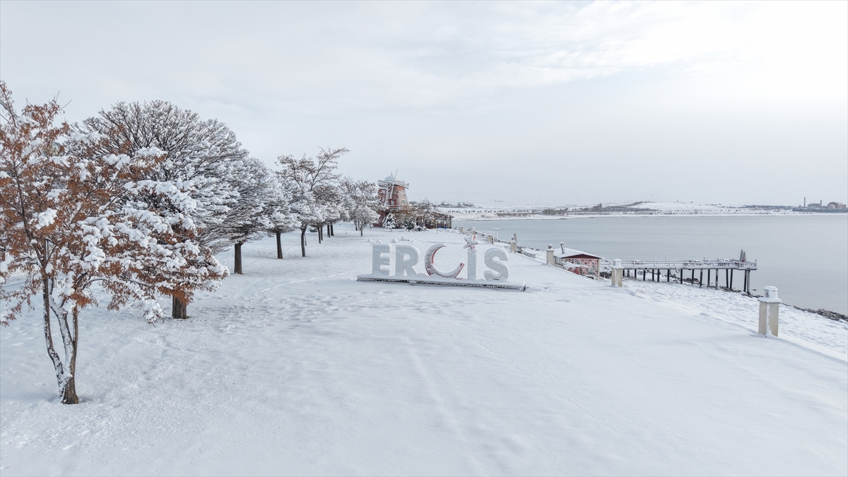 Van’ın Erciş ilçesi kar yağışının ardından beyaza büründü.