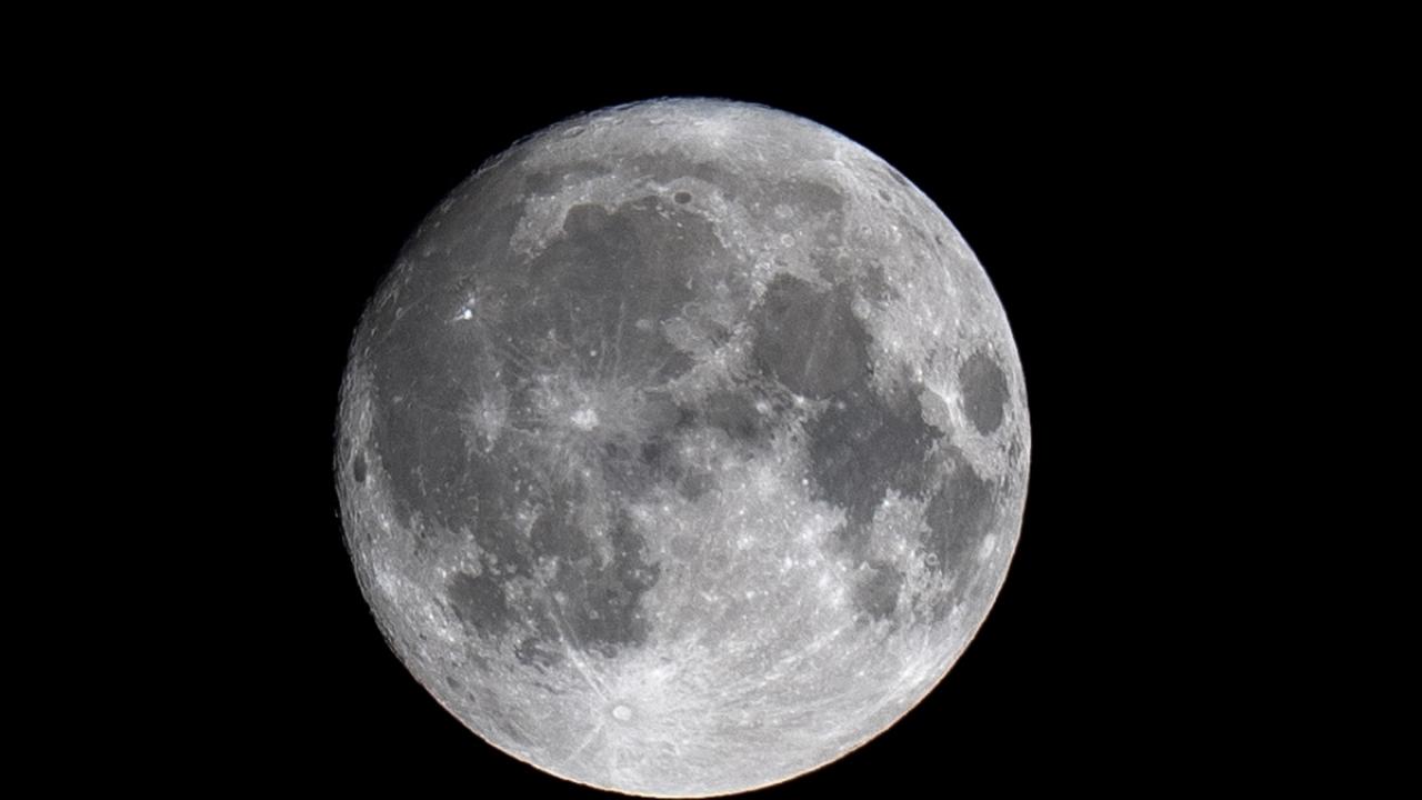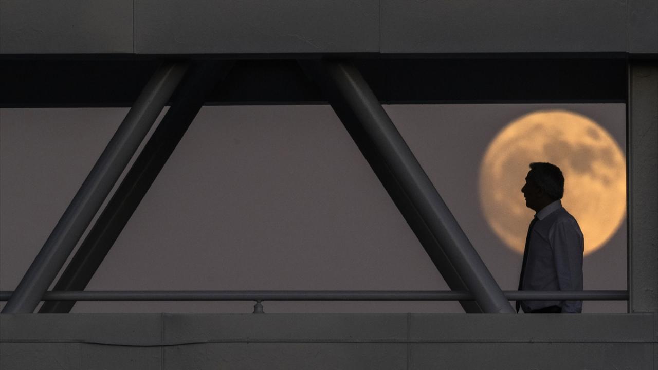 Gökyüzünde beliren dolunay, üst geçitten geçe yaya ile görüntülendi.