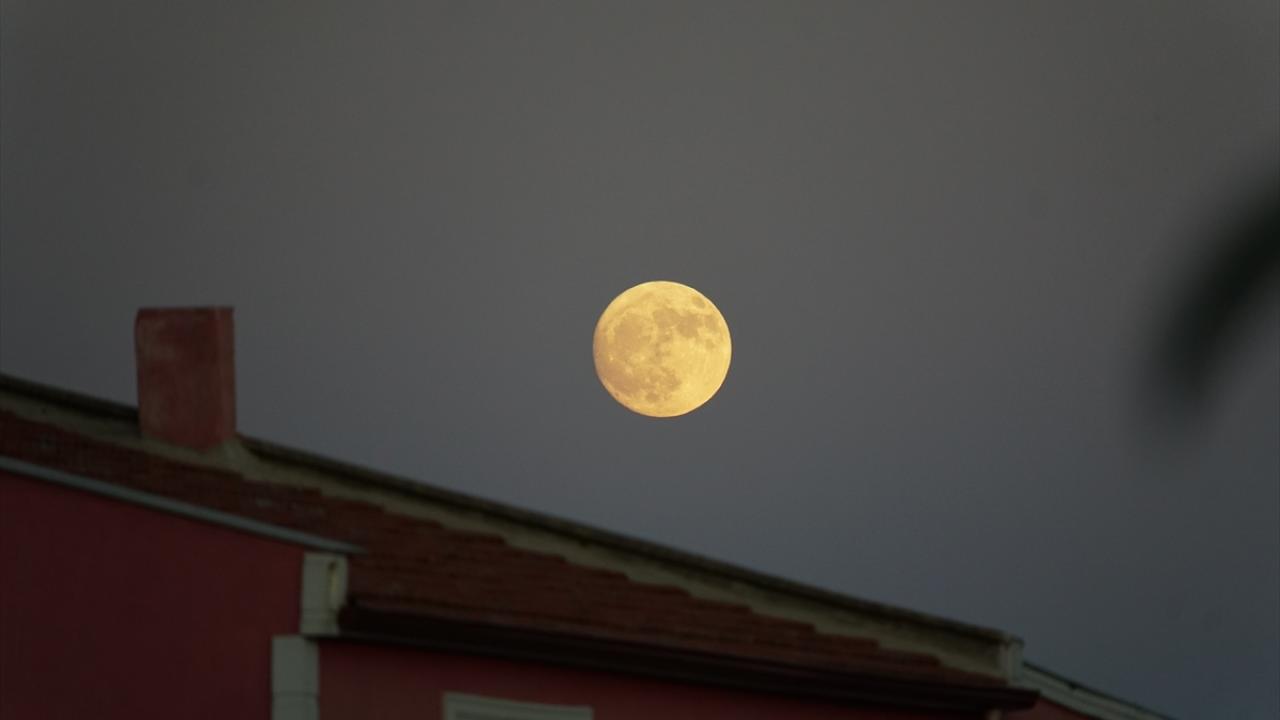 Tekirdağ`da akşam saatlerinde gökyüzünde beliren dolunay, güzel görüntü oluşturdu.