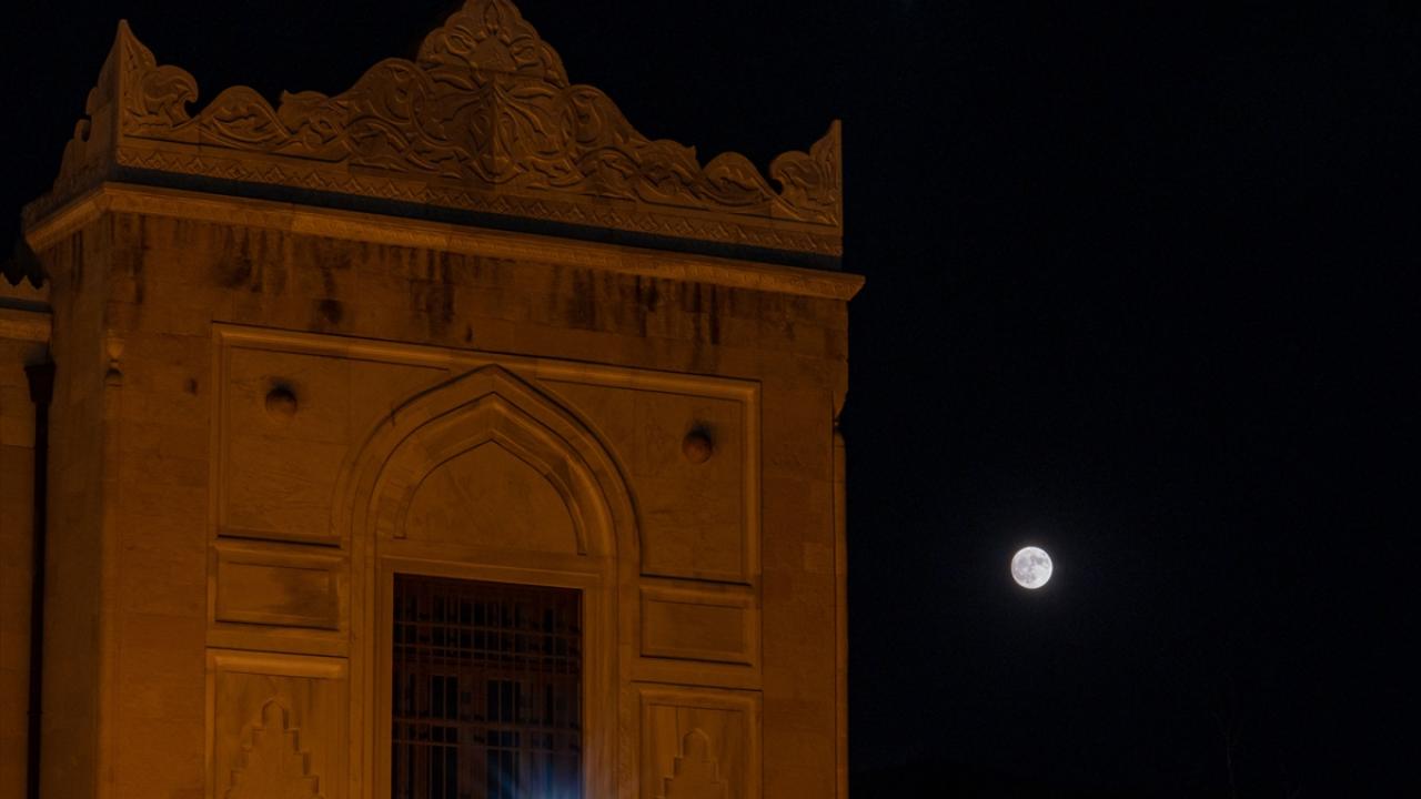 Başkentte Etnografya Müzesi ile birlikte görüntülenen dolunay, güzel görüntü oluşturdu.