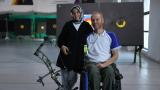 Felç kalan eşini tekerlekli sandalyeyle "hedefe" taşıyor