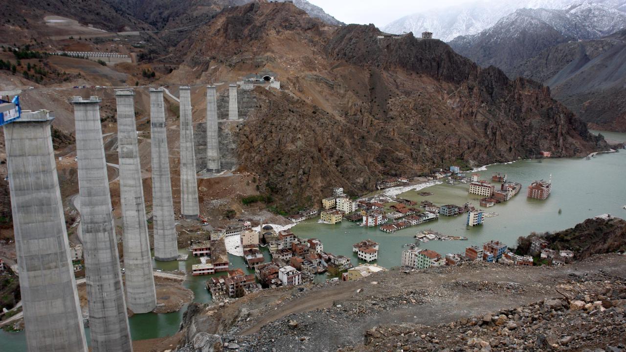 Artvin’de Çoruh Nehri üzerine inşa edilen Yusufeli Barajı’nda, 134,66 milyon metreküp su depolandı, su seviyesi 91 metreye ulaştı. Yol ve köprülerin dipte kaldığı ilçede, baraj suları eski yerleşim yerinden geçen viyadük ayaklarına dayandı, terk edilen binaların büyük kısmı su altında kaldı.
