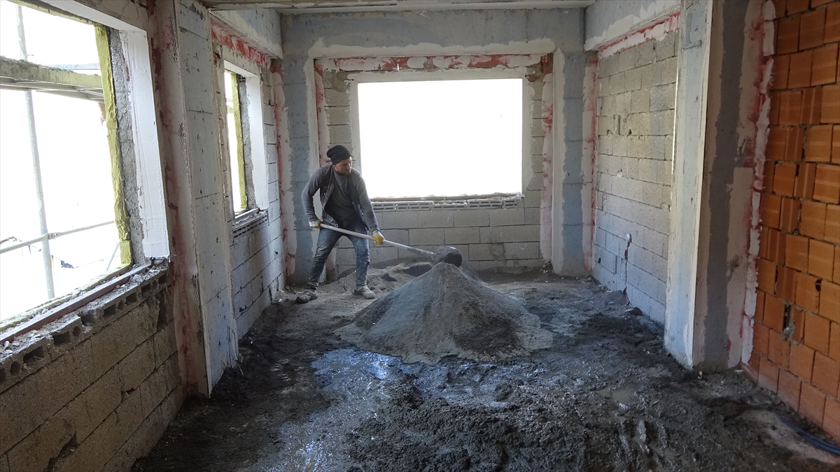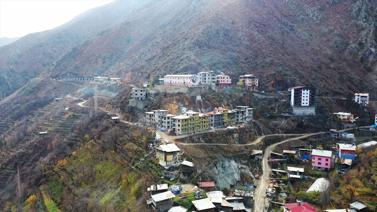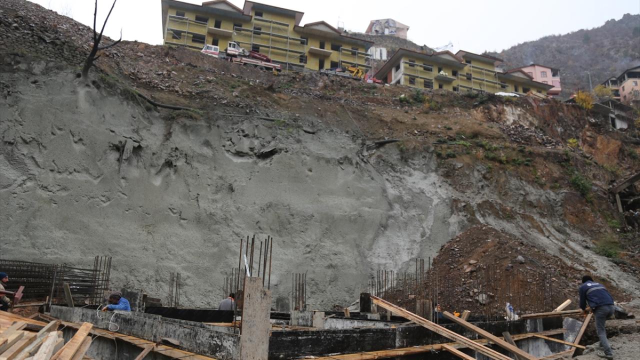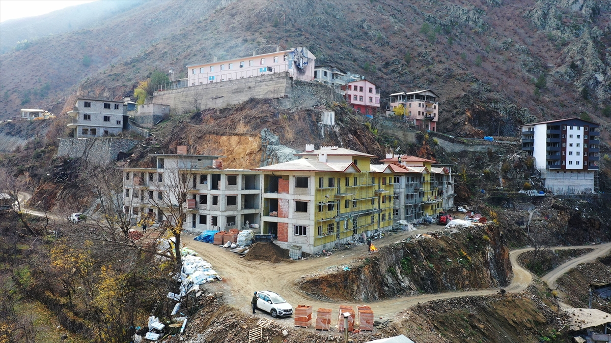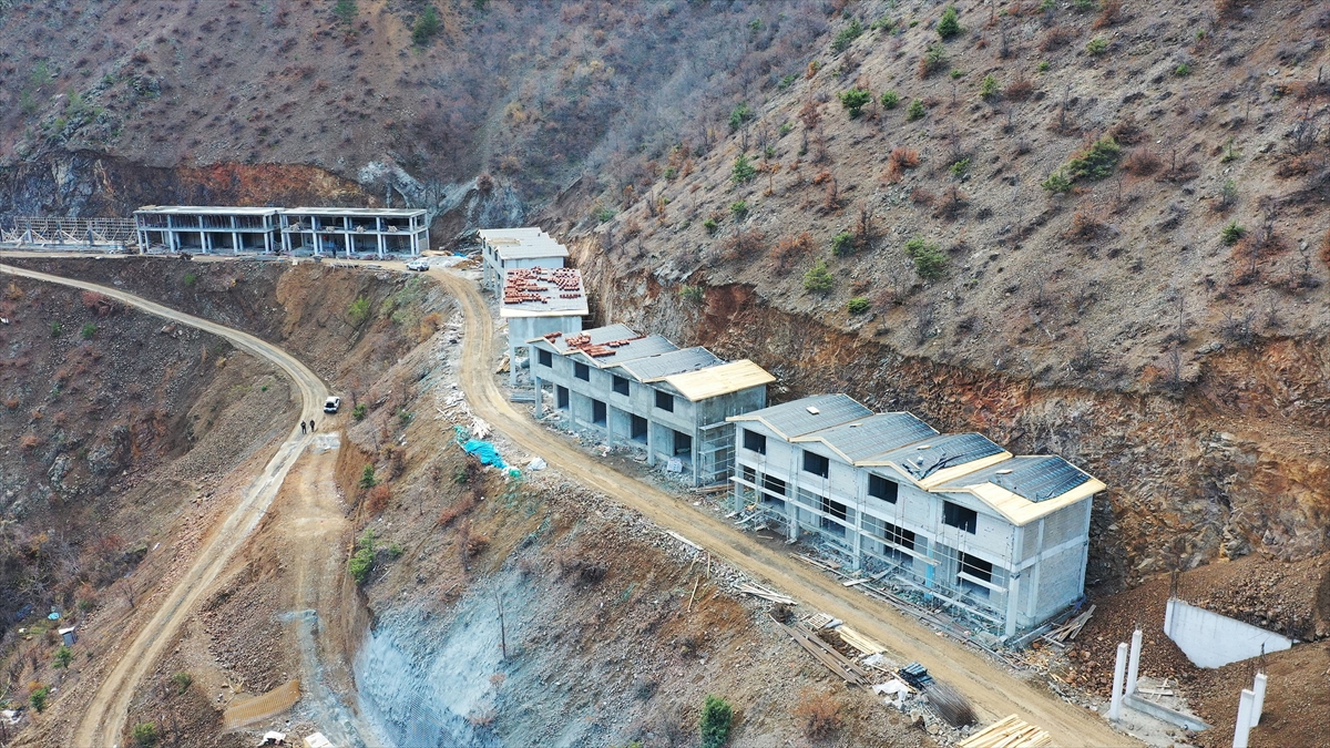 Artvin'in Yusufeli ilçesine bağlı Dereiçi köyünde, 17 Mart 2021'de çıkan yangında evleri zarar gören afetzedeler için yapılan konutların inşaatı tüm hızıyla sürüyor.
