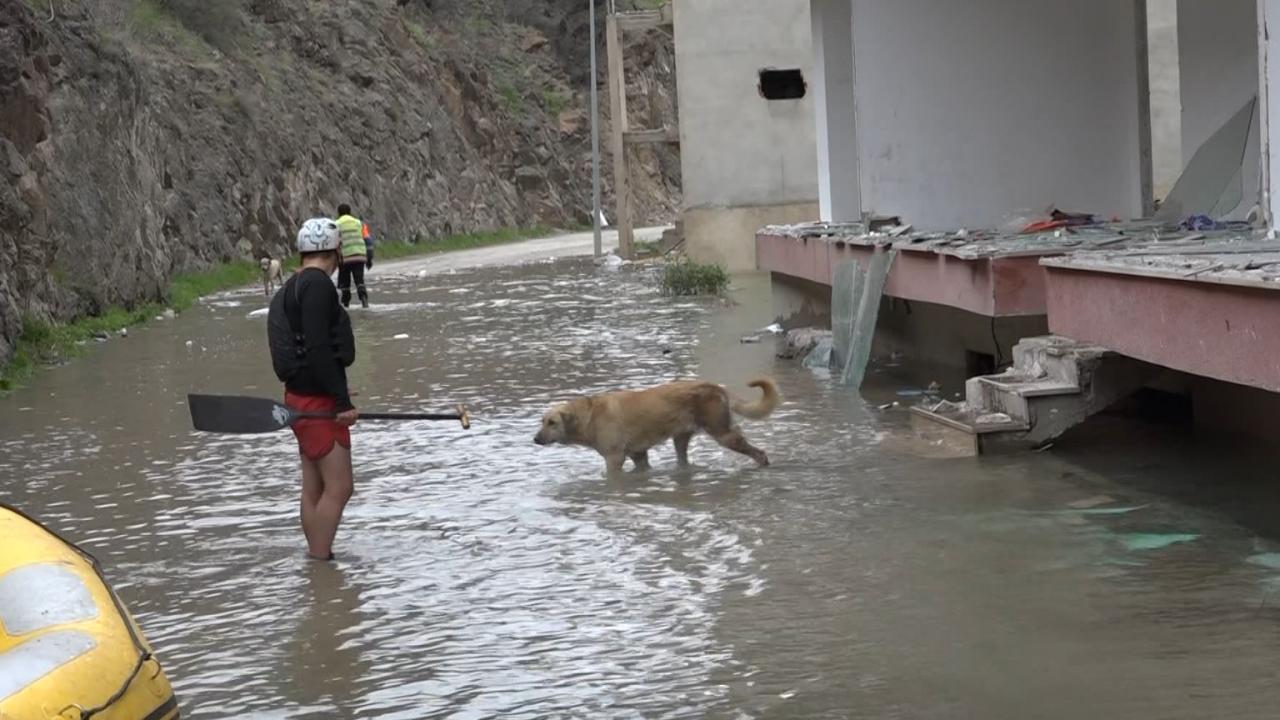 Kano federasyonunda sporcu olan İbrahim Yılmaz ise, “Haber alınca buraya geldik. Saatlerdir hayvanları kurtarmaya çalışıyoruz. Botlarla açılıyoruz. Binalar var aslında, onların arasından geçmek falan zor oluyor. Hava da soğuk ama her canlıyı kurtarana kadar devam edeceğiz” diye konuştu.