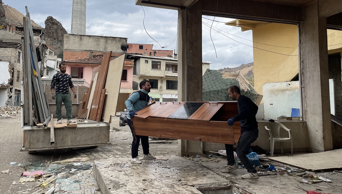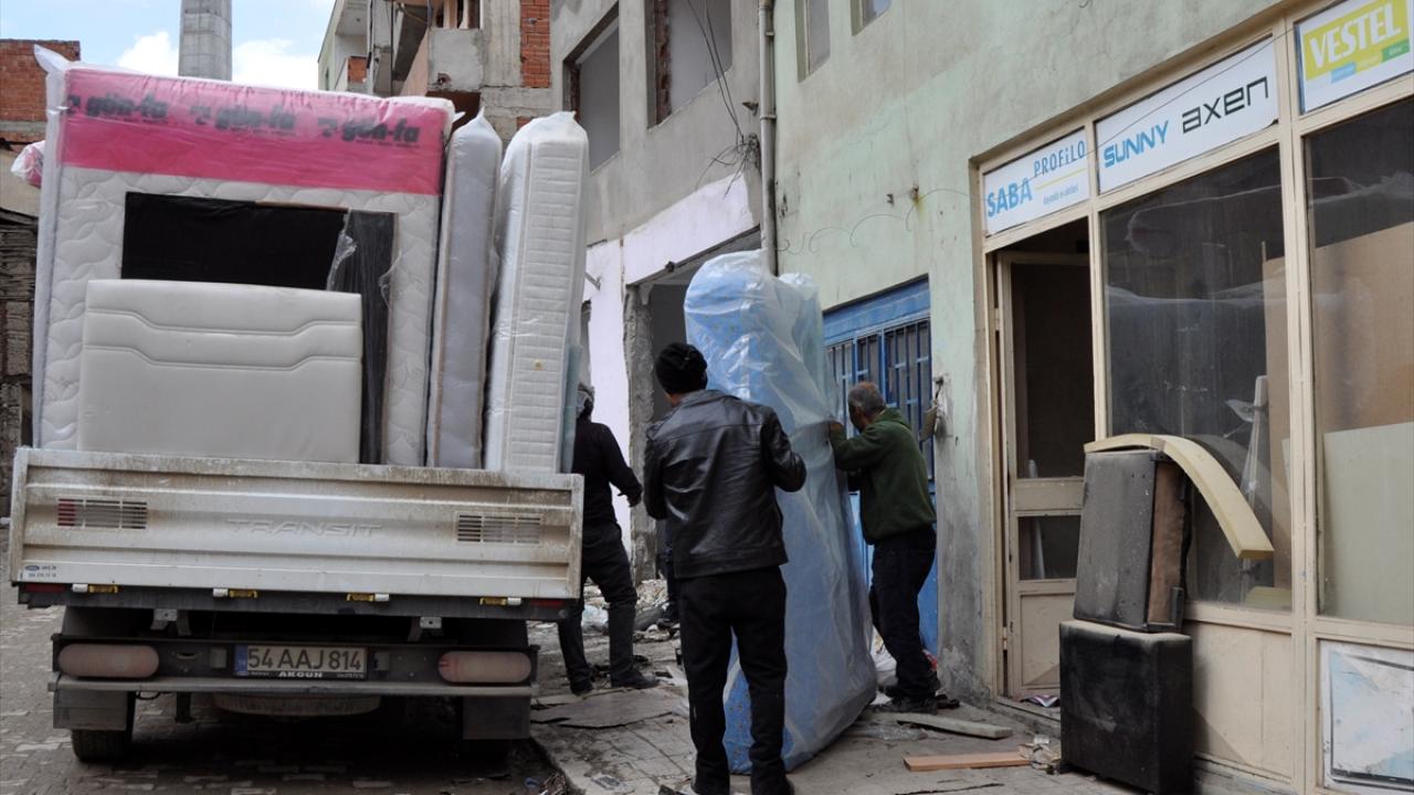 Binaların yıkım işlemlerinin devam ettiği eski ilçe merkezinden yeni yerleşim yerine henüz taşınmayan bazı esnaf, iş yerlerini boşaltmak için çalışmalarını hızlandırdı.