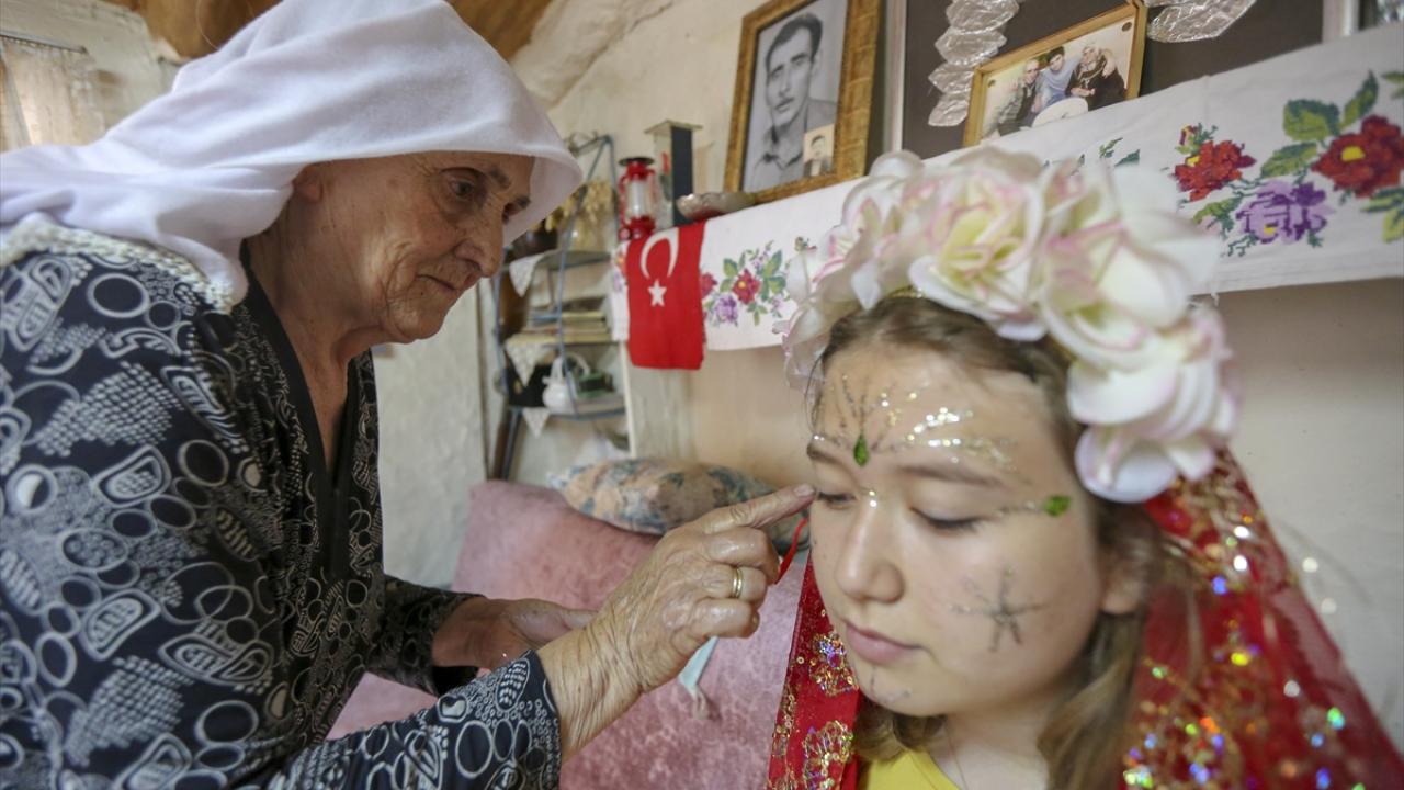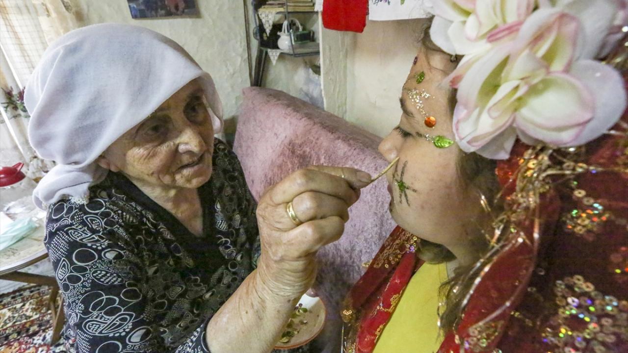 İzmir'in Karaburun ilçesinde yaşayan 78 yaşındaki Şerife Zorlu, kına gecelerinde ve düğünlerde gelinlere uğur getireceğine inanılarak yapılan "yüz yazma" geleneğini devam ettiriyor.