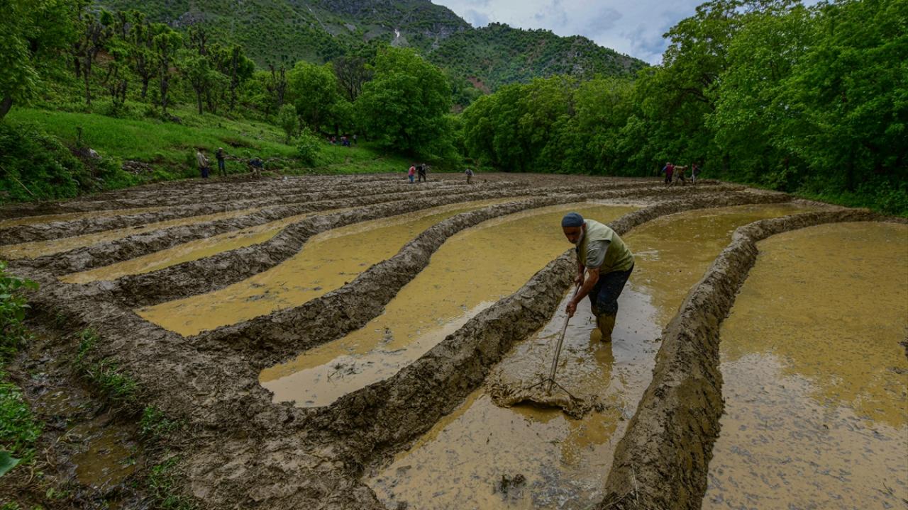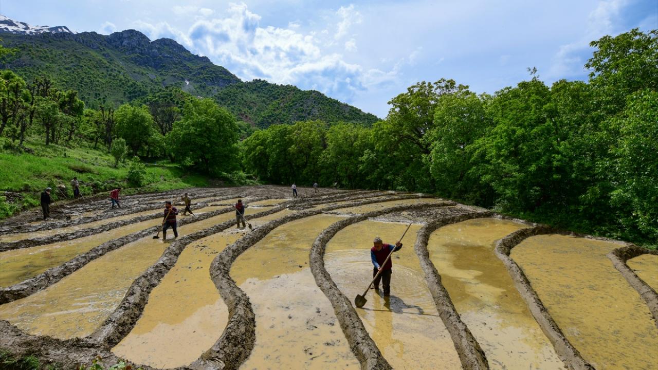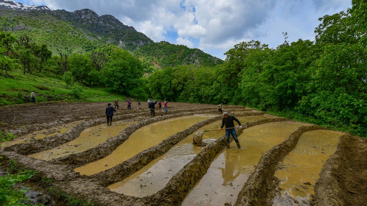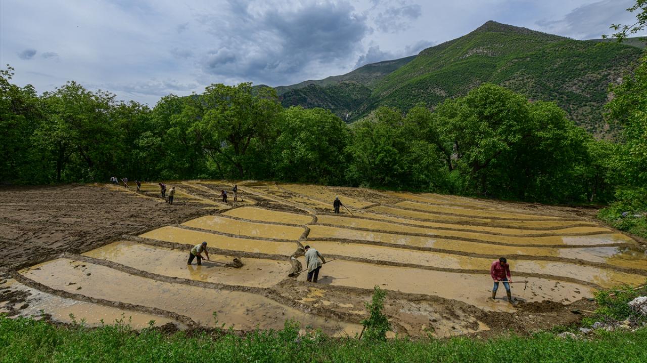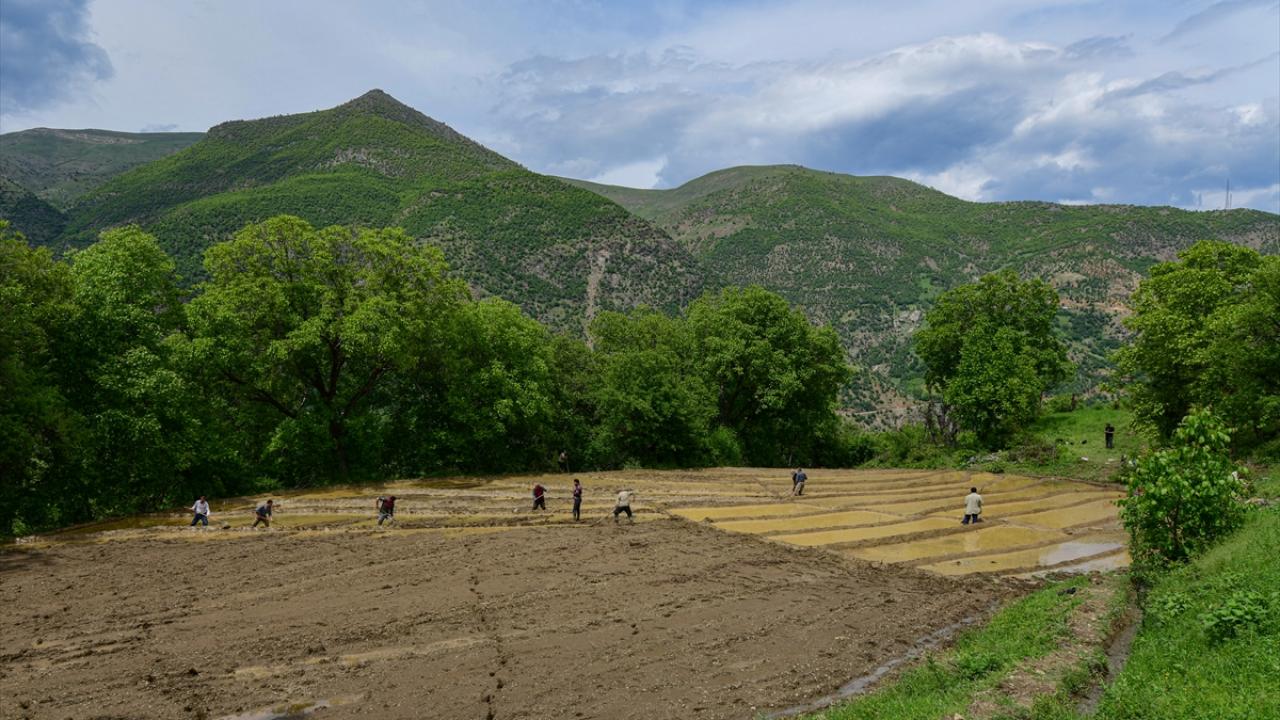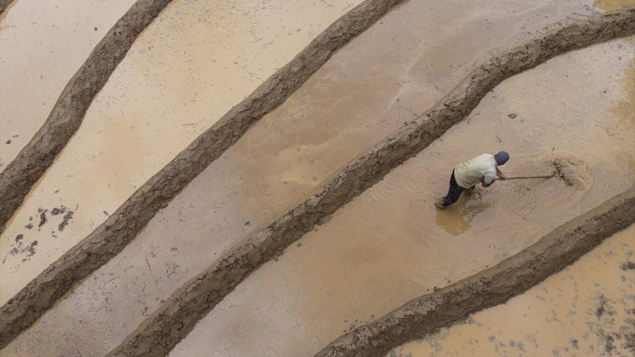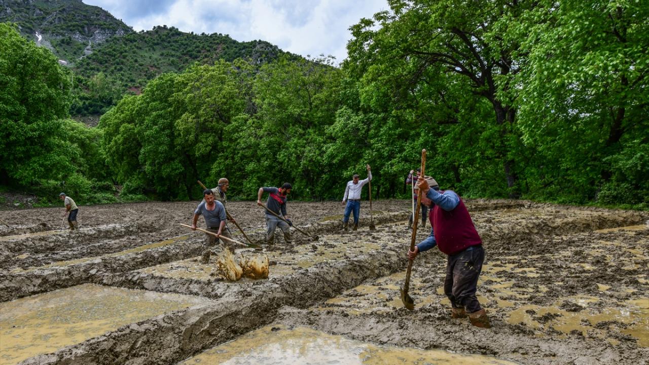 Her yıl mayıs ve haziran aylarında arazilerine çeltik ekimi yapmak için bir araya gelen köylüler imece usulü ile ekim yapıyor.