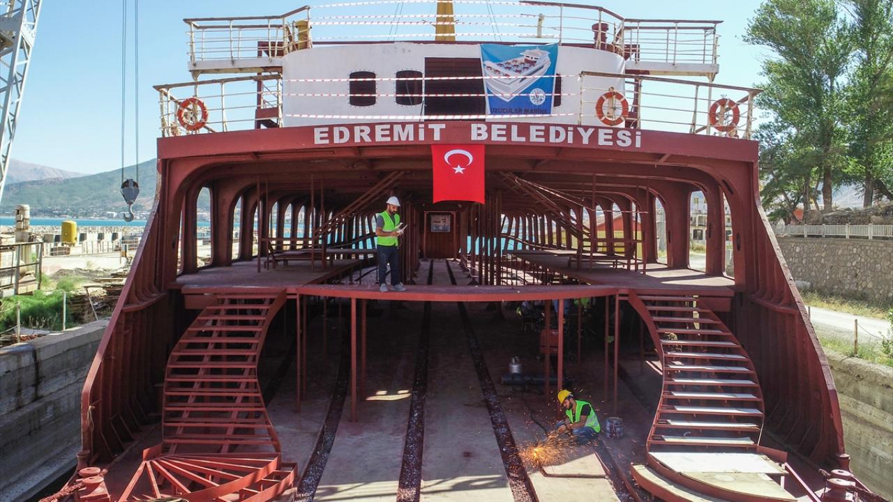 Van Gölü kıyısında bulunan Edremit ilçesinde, kente gelen turistlere farklı bir tatil deneyimi yaşatmak amacıyla belediye tarafından "yüzen otel"e dönüştürülecek atıl durumdaki feribotta çalışmaların yüzde 50'si tamamlandı.