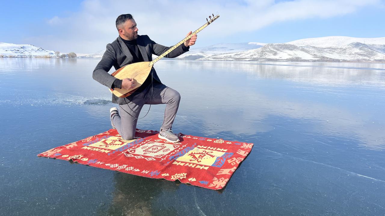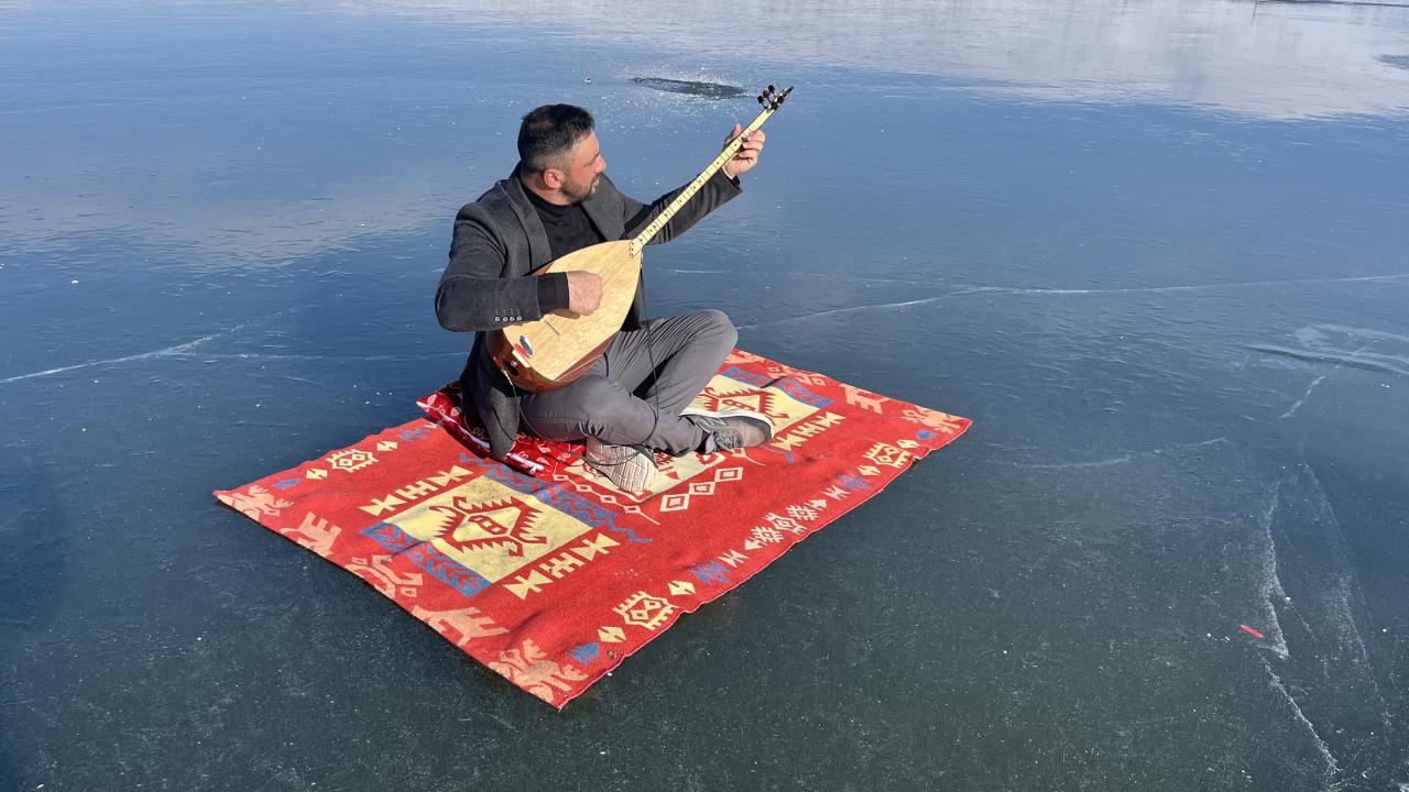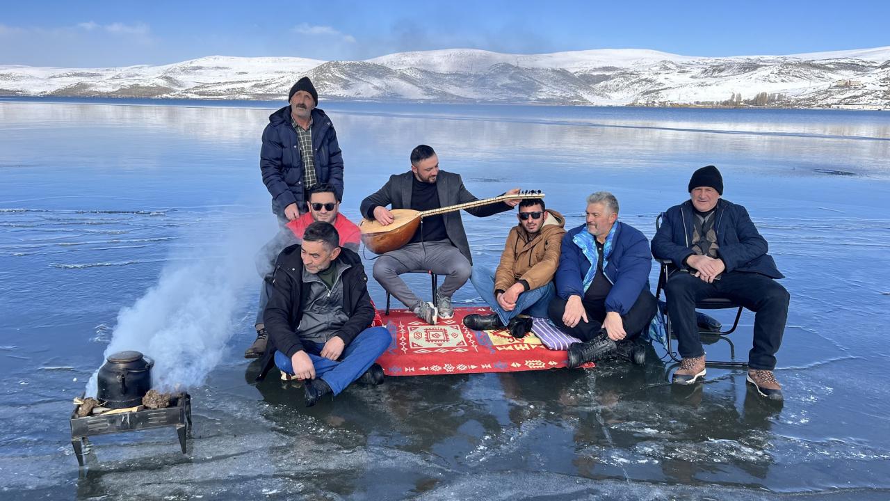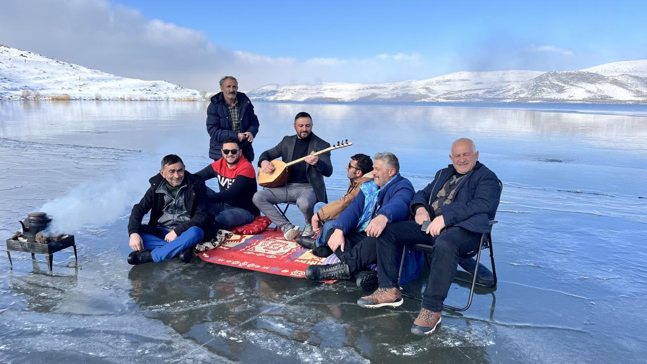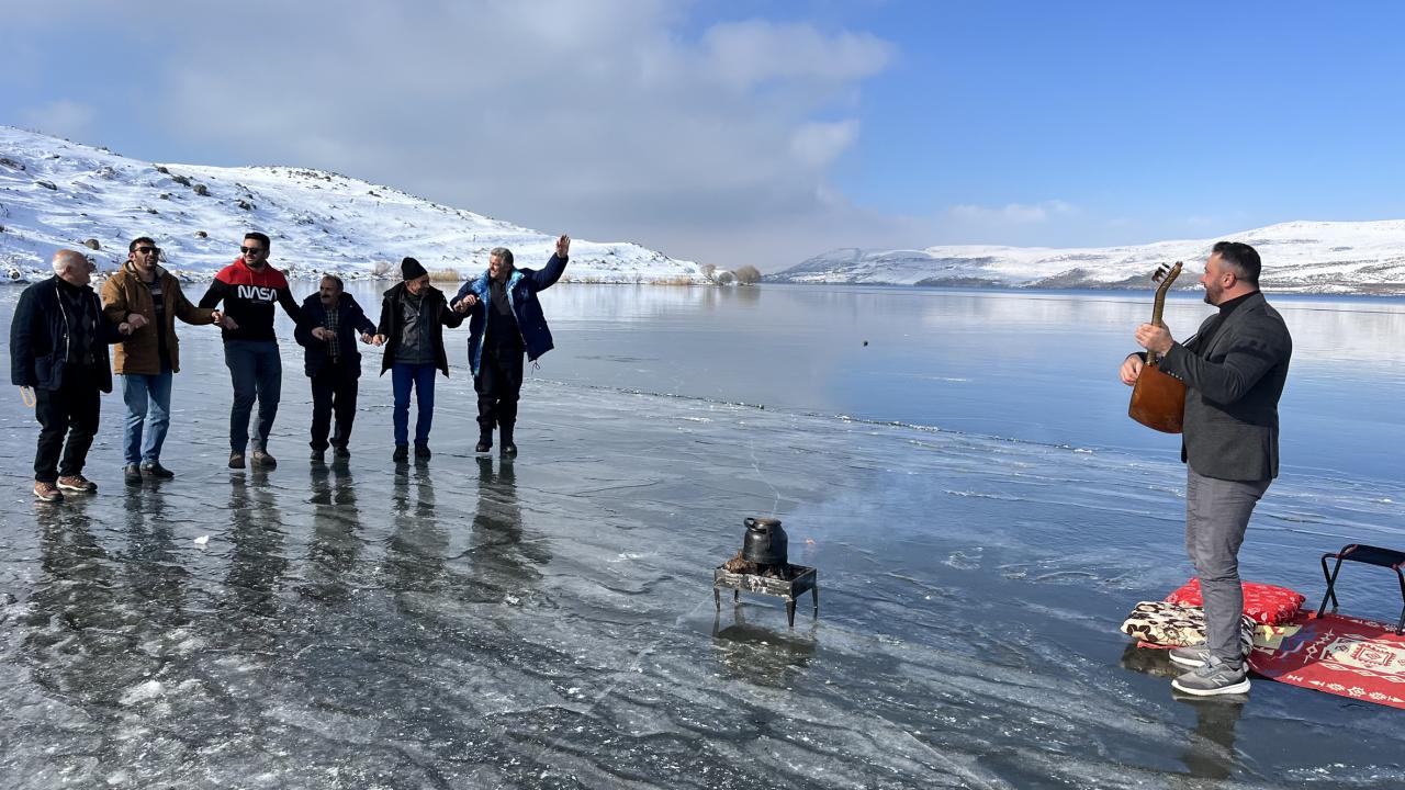 Yöre aşıklarından Berkan Öztürk, “Çıldır gölünün buz tutmasını ilk biz değerlendirdik. Buz tutmasını kutlamak istedik. Çayımızı demledik, saz eşliğinde türküler söyleyip, halay çekerek buzun tadını çıkardık" diye konuştu.