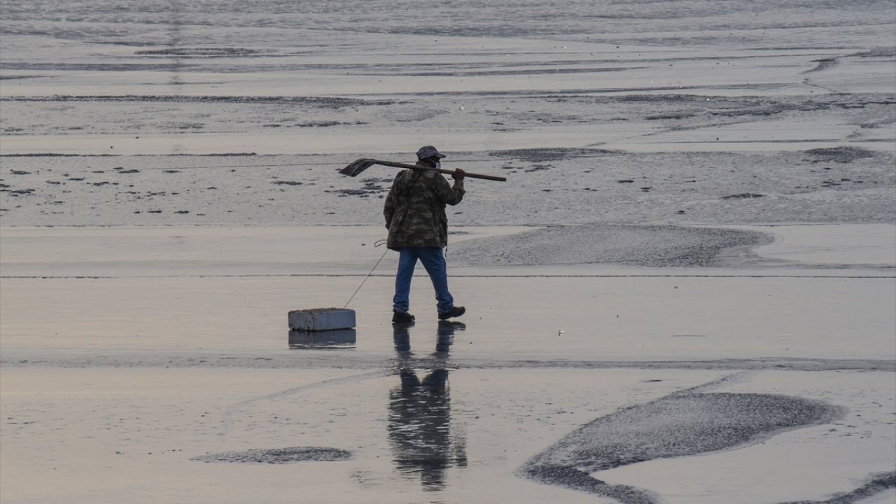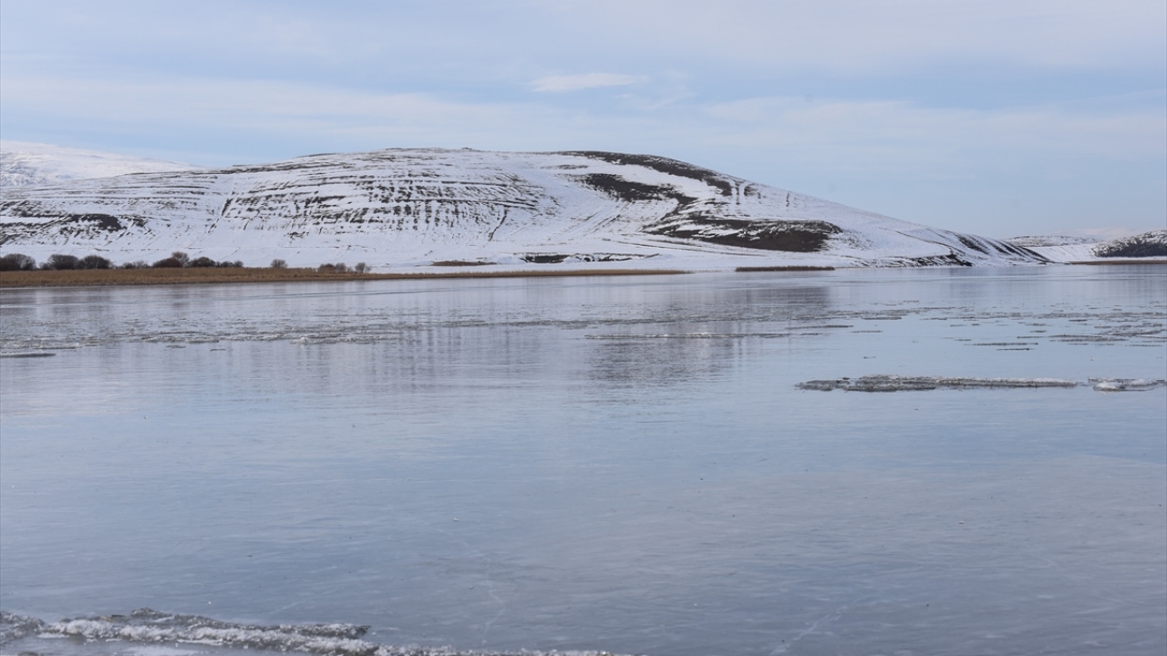 Yüzeyi kısmen donan Çıldır Gölü'nde eşsiz manzaralar oluştu