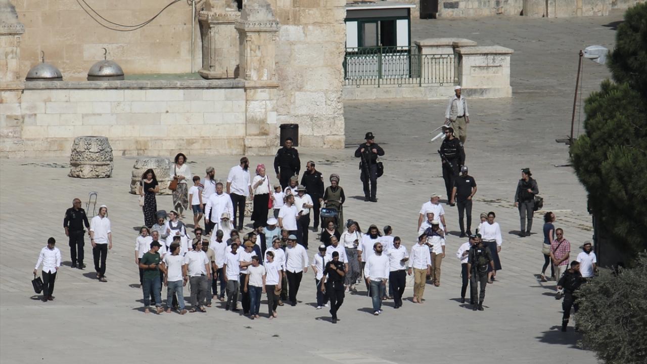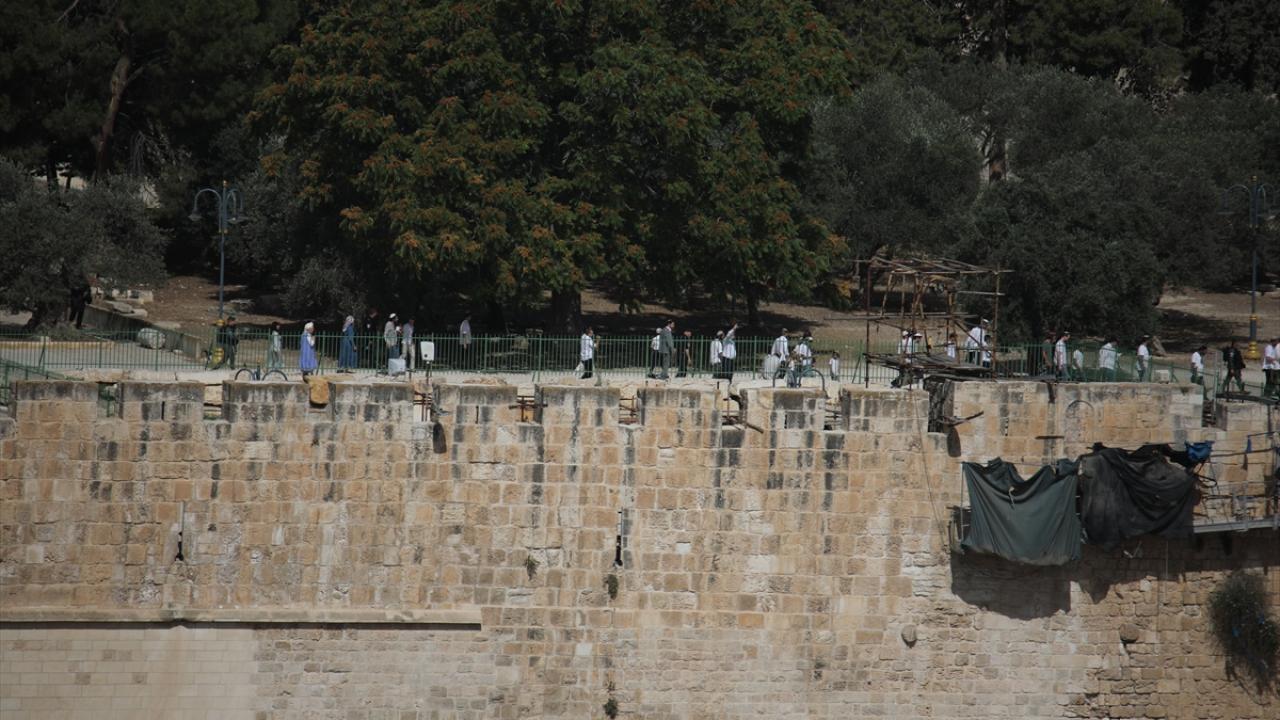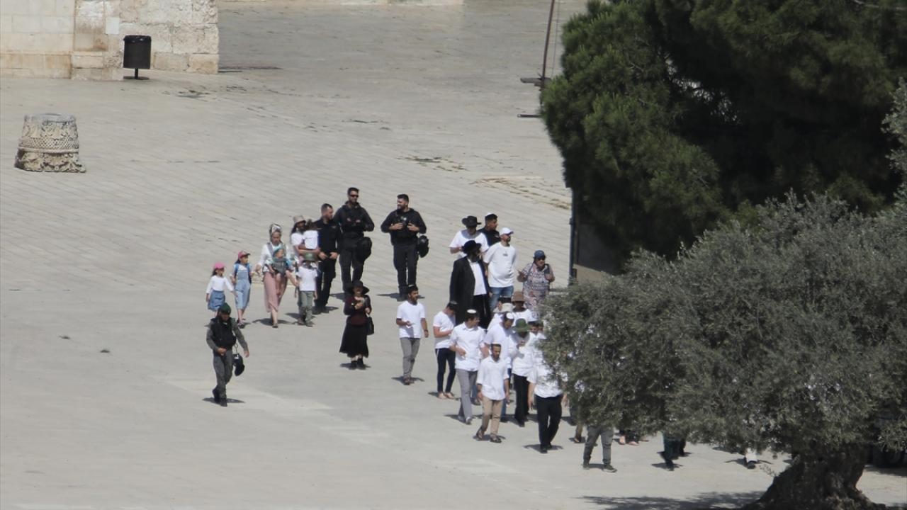 Haberde, bazı Yahudilerin Mescid-i Aksa’ya Tevrat ruloları ile girmeye çalıştıklarına dikkat çekilen açıklamada, Burak Duvarı (Ağlama) bölgesi başta olmak üzere binlerce fanatik Yahudi’nin Harem-i Şerif’in çevresinde ve kapılarında kutlama ve ayinler düzenlediği vurgulandı.