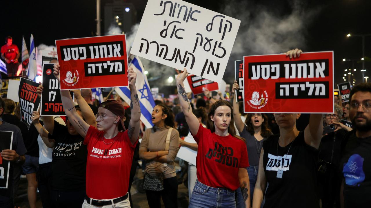 Yüzlerce İsrailli, Savaş Kabinesi'nin toplantısı sırasında Başbakan Binyamin Netanyahu'nun Batı Kudüs'teki ofisi önünde gösteri yaparak Gazze Şeridi'ndeki esirlerin takas anlaşmasıyla serbest bırakılmasının sağlanmasını talep etti.