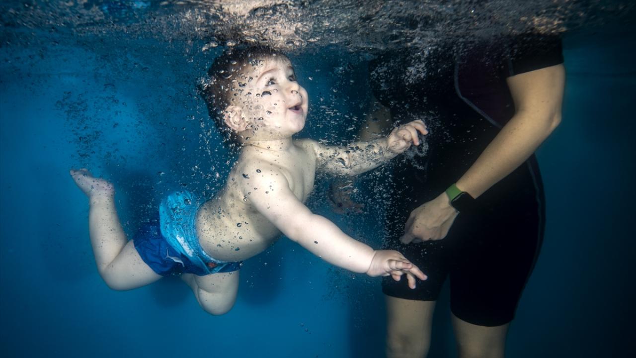 İstanbul'da yüzme eğitmeni iki kardeş, yüzme ve su güvenliği eğitimi verdikleri bebeklerin suyu erken yaşta sevmeleri ve korkmamalarını sağlamaya çalışıyor.