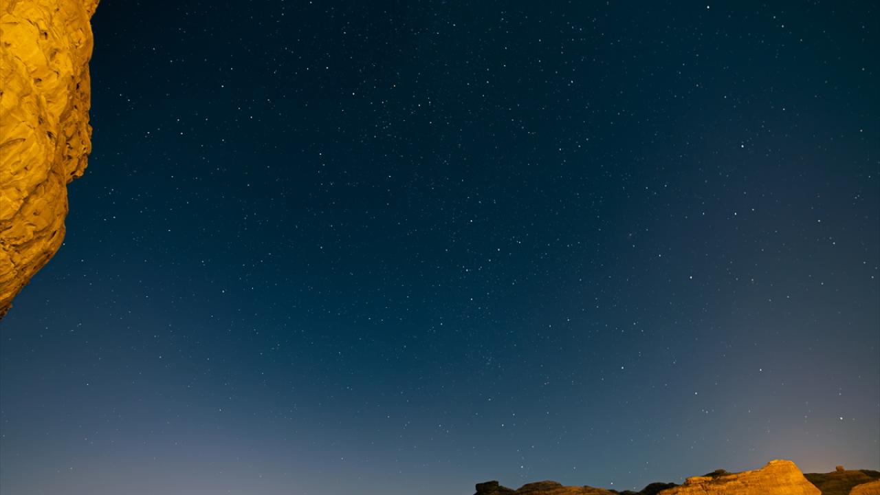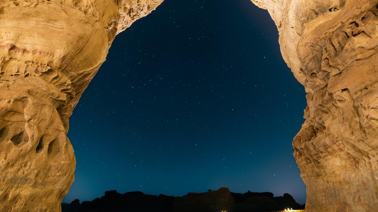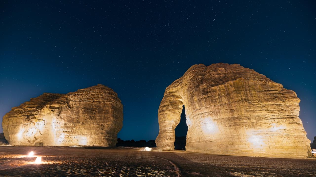 Suudi Arabistan’ın Al Ula kentinin 11 kilometre kuzeydoğusunda yer alan, milyonlarca yıl boyunca rüzgâr ve suyun aşındırıcı etkisiyle şekillenen 52 metre yüksekliğindeki Fil Kayası (Jabal AlFil), yıldız pozlama tekniğiyle görüntülendi.