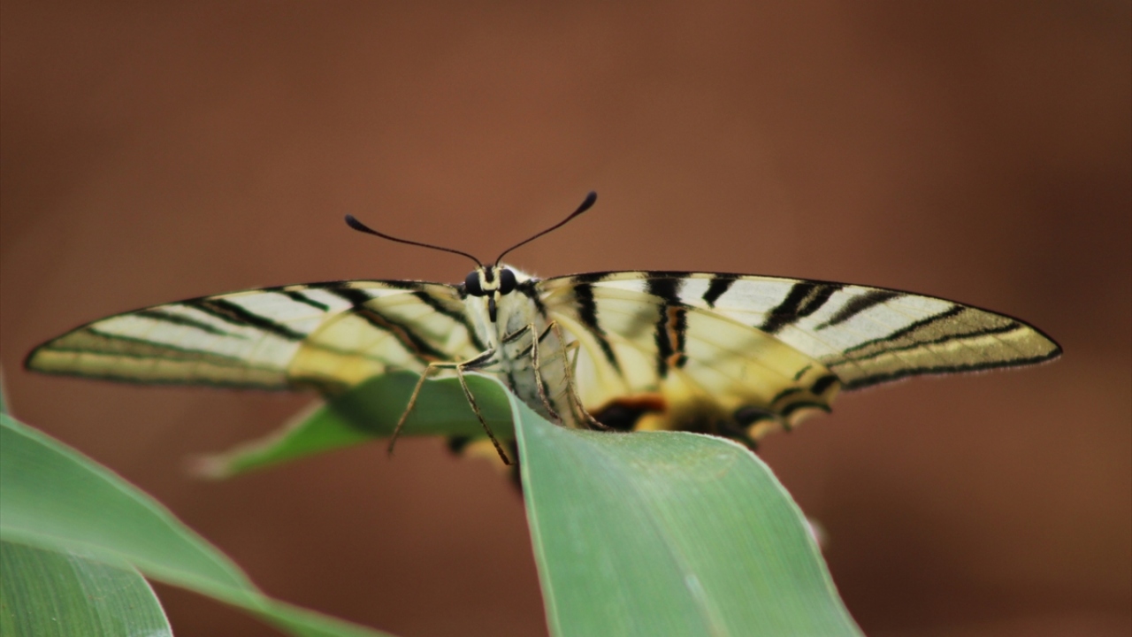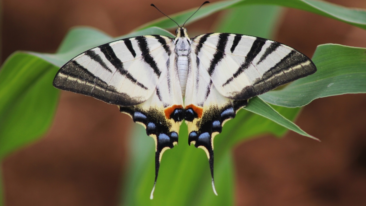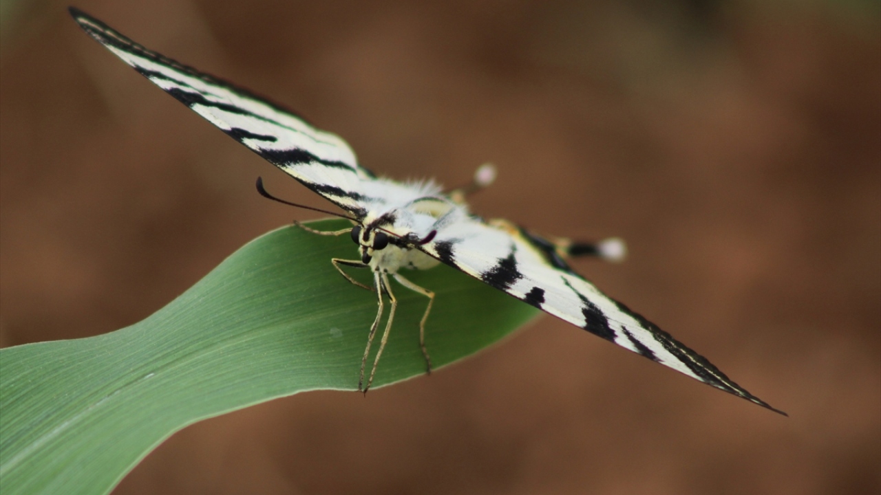 Türkiye'de çok az rastlanan ve dünyanın en güzel kelebeklerinden biri olarak gösterilen, siyah-beyaz çizgilerle kaplı üçgen şeklindeki kanatları ve kuyruğu ile büyük ilgi çeken "Zebra çatal kuyruklu kelebek", Şanlıurfa'nın Suruç ilçesi kırsalındaki Bilge Mahallesi'nde görüntülendi.