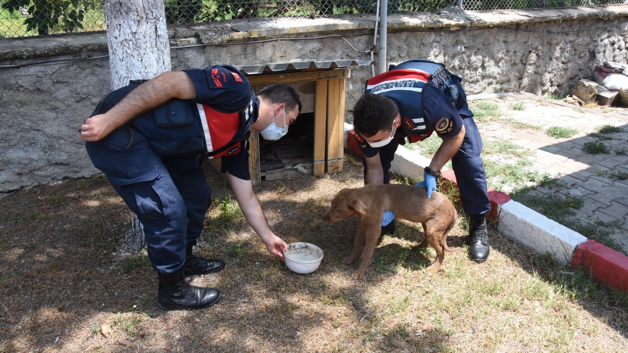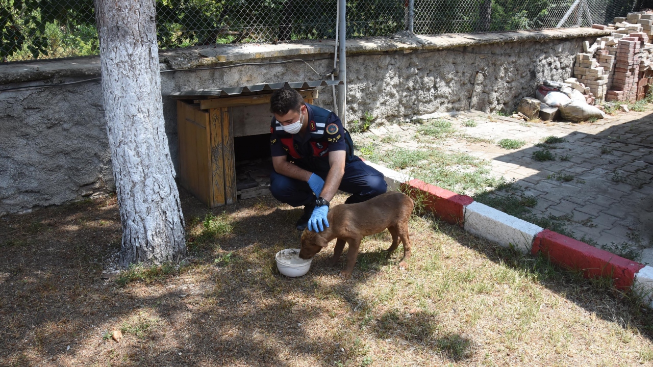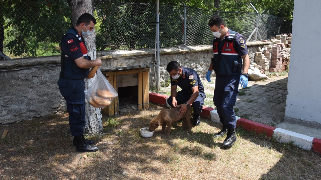 Kütahya’da Örencik Jandarma Karakol Komutanlığı ekipleri, devriye görevi yaptıkları sırada zehirlenmiş halde buldukları yavru sokak köpeğini tedavi ettirip, sahiplendi.