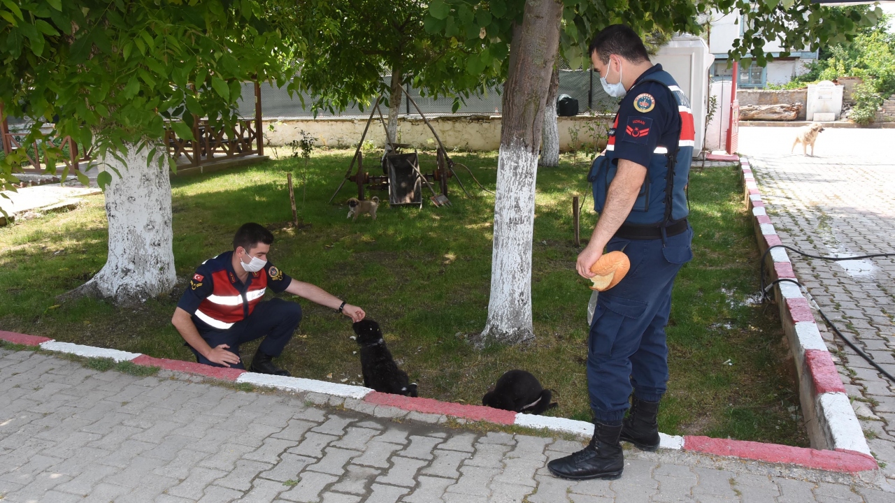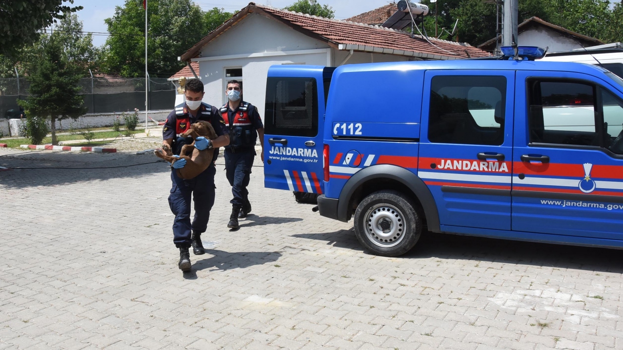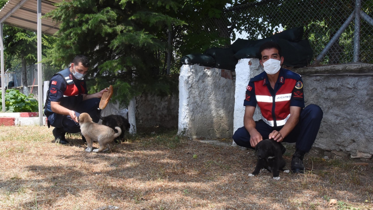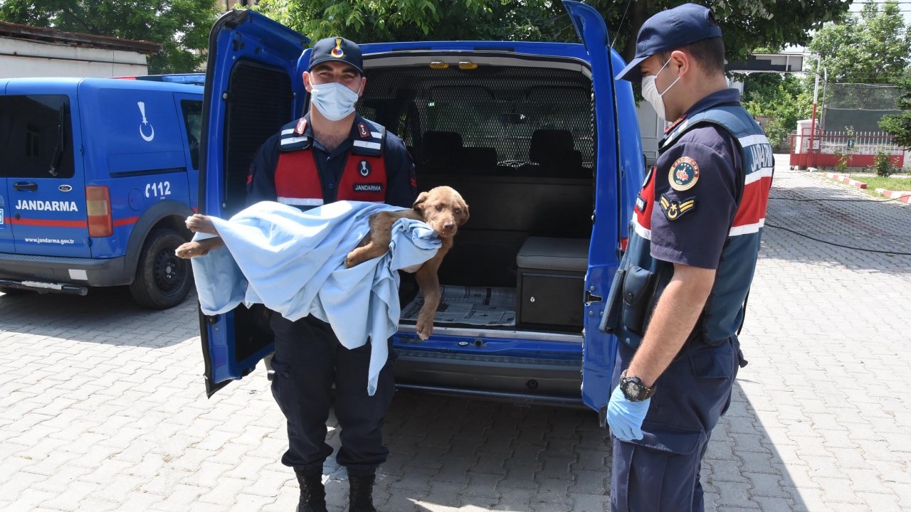 Kütahya’da Örencik Jandarma Karakol Komutanlığı ekipleri, devriye görevi yaptıkları sırada zehirlenmiş halde buldukları yavru sokak köpeğini tedavi ettirip, sahiplendi.