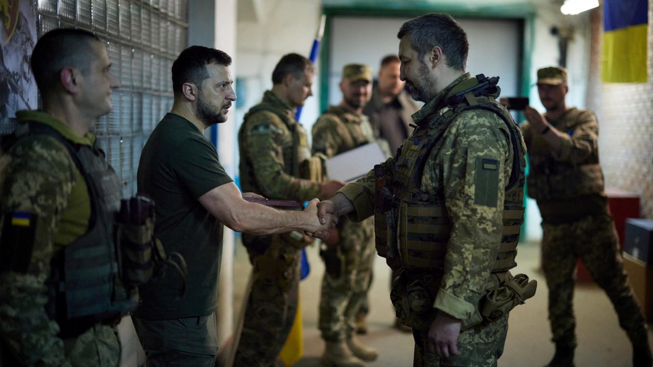 Ukrayna Devlet Başkanı Vladimir Zelenskiy, Rusya'nın Ukrayna'ya saldırısı sürerken, Ukrayna'nın Soledar, Donetsk bölgesinde görev yapan Ukraynalı askerleri ziyaret etti.