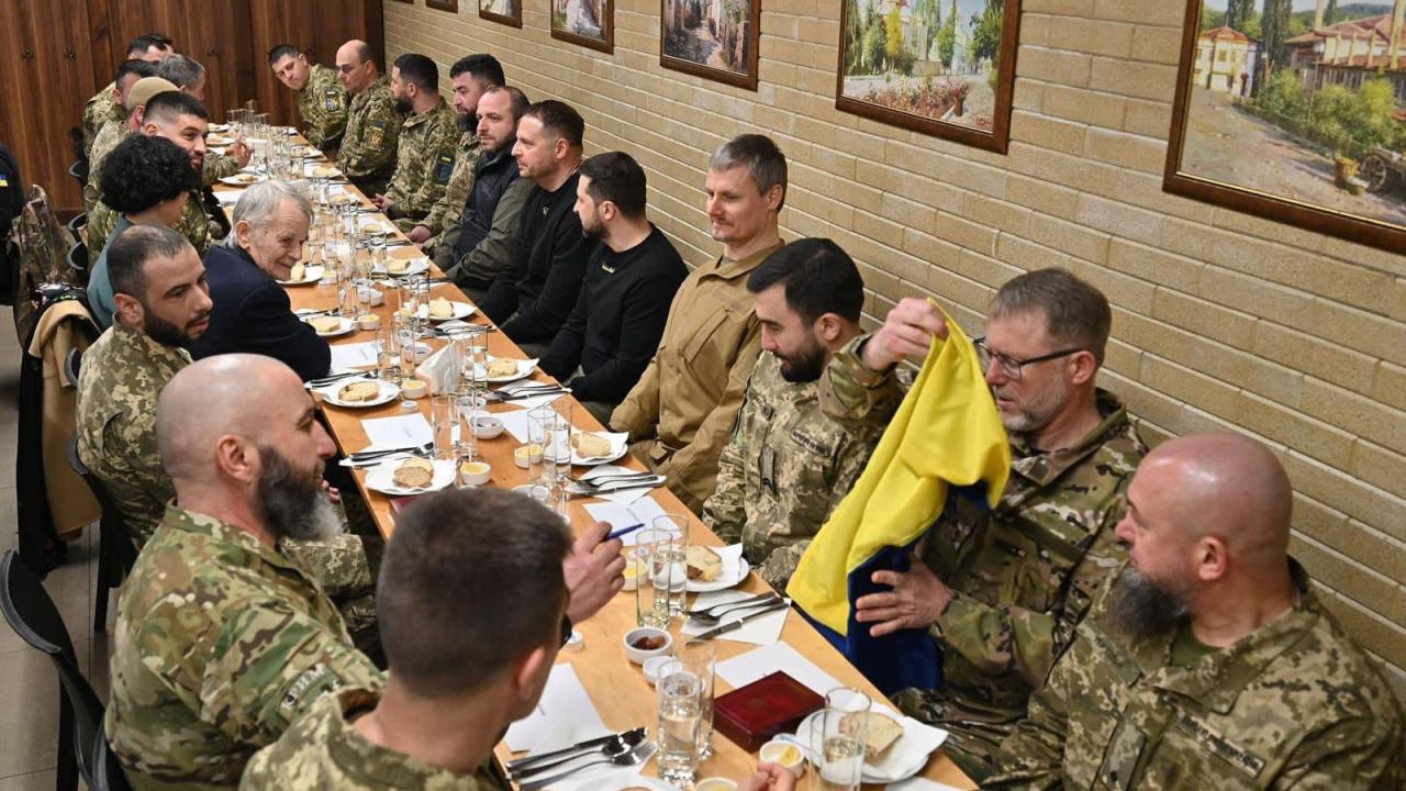 Zelenskiy, programda, Rusya-Ukrayna Savaşı`nda cephede görevli bazı askerlere devlet nişanı verdi.