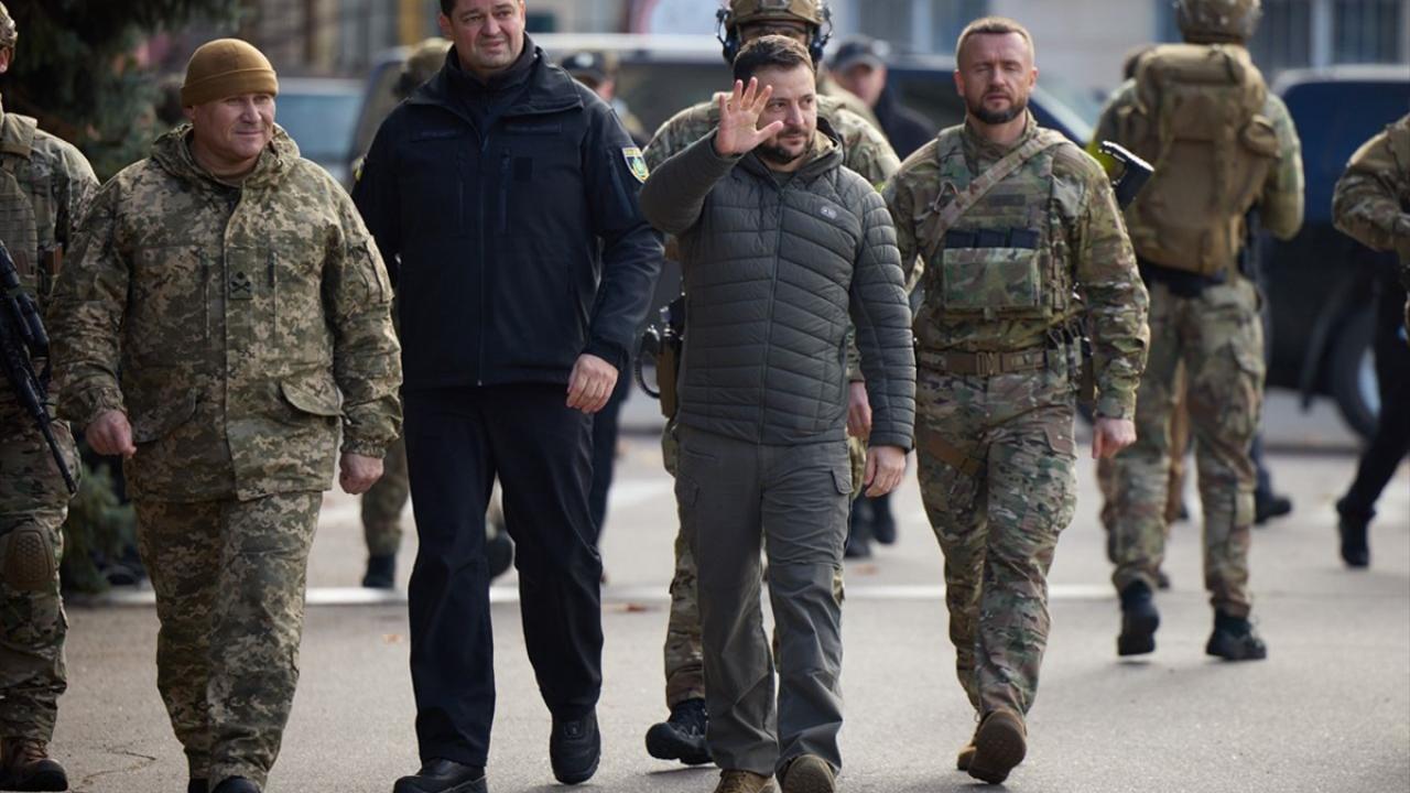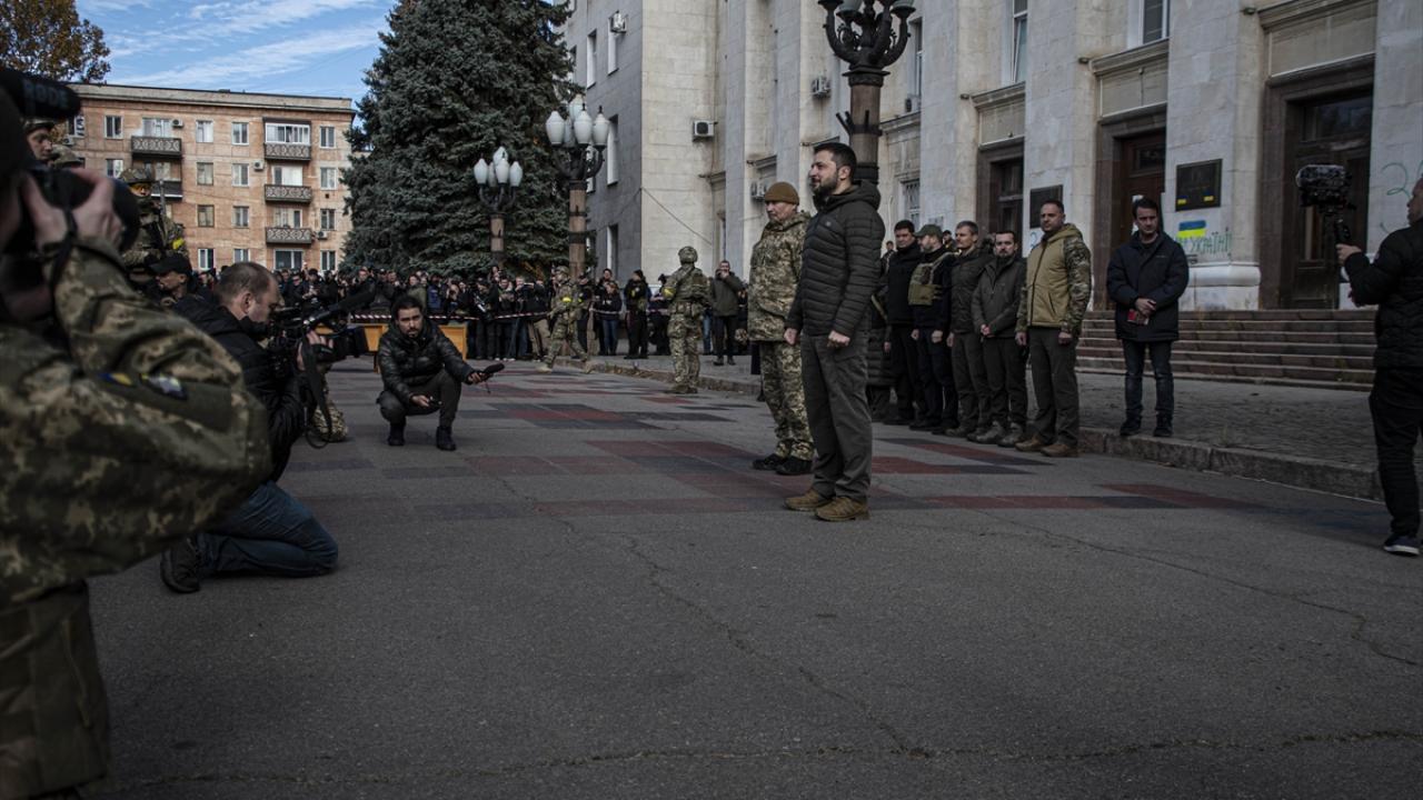 Ukrayna Devlet Başkanı Vladimir Zelenskiy, Rus birliklerin çekilmesinin ardından tekrar Ukrayna ordusunun kontrolüne geçen Herson kentini ziyaret etti.
