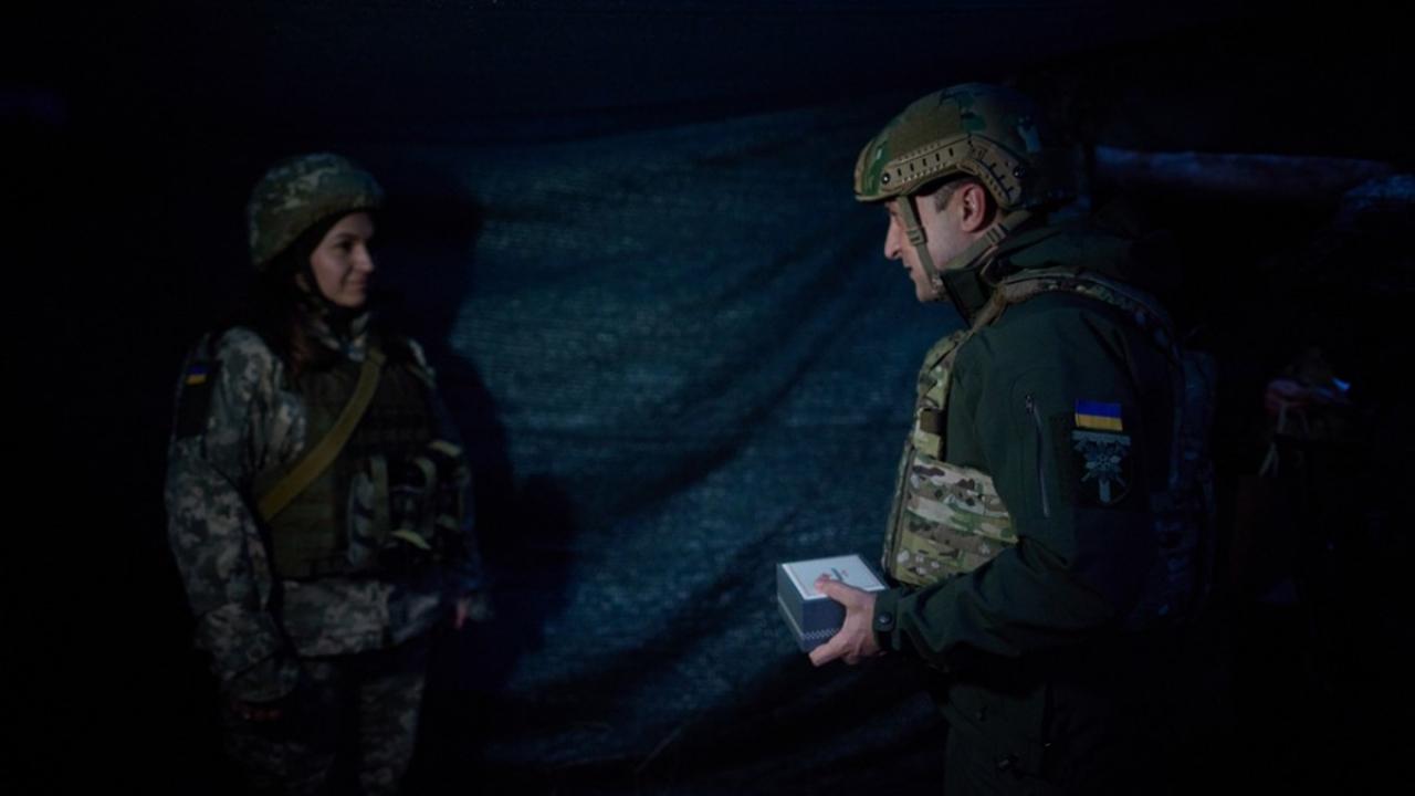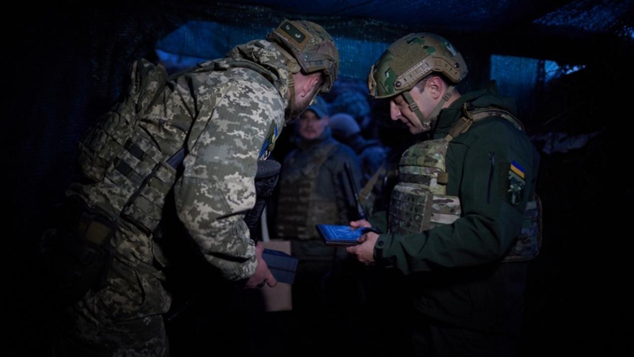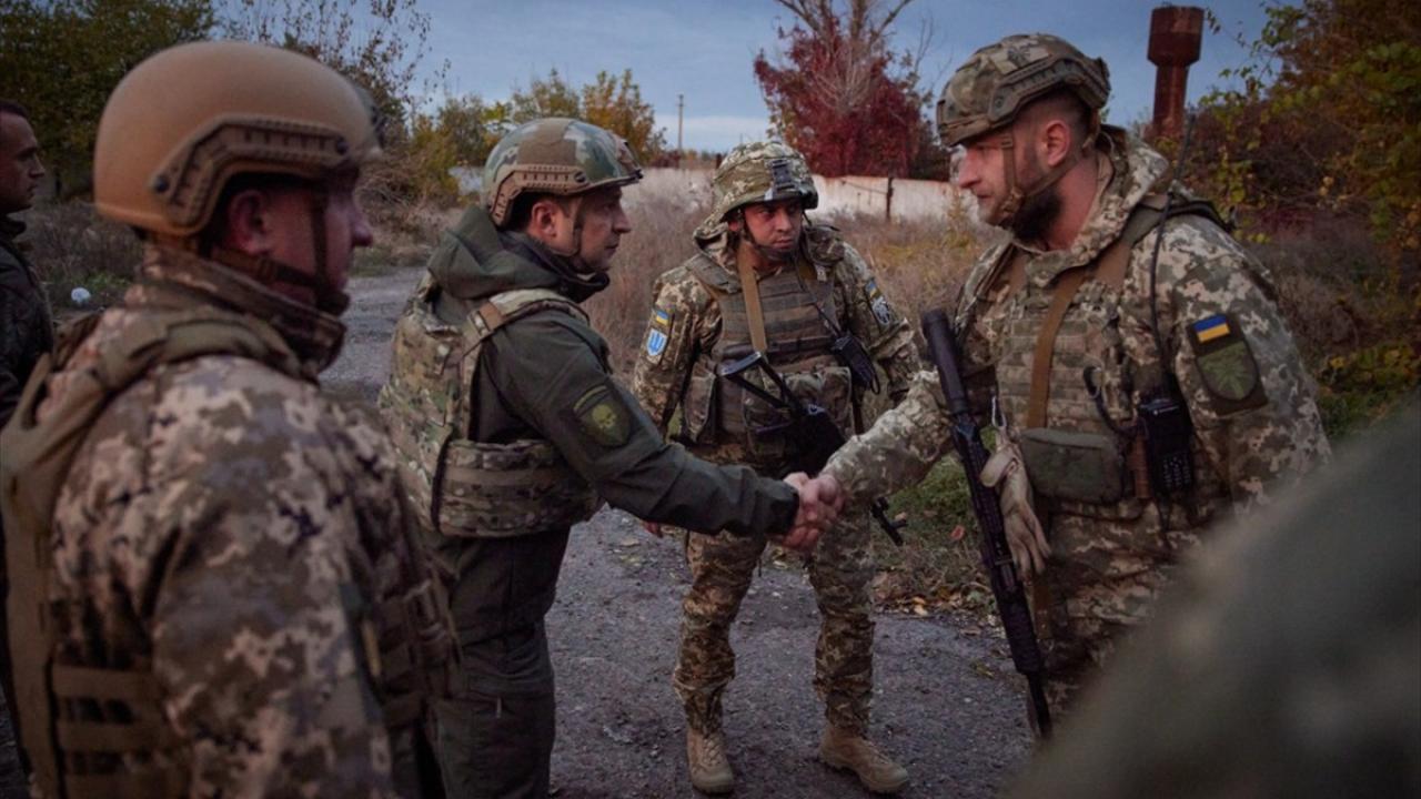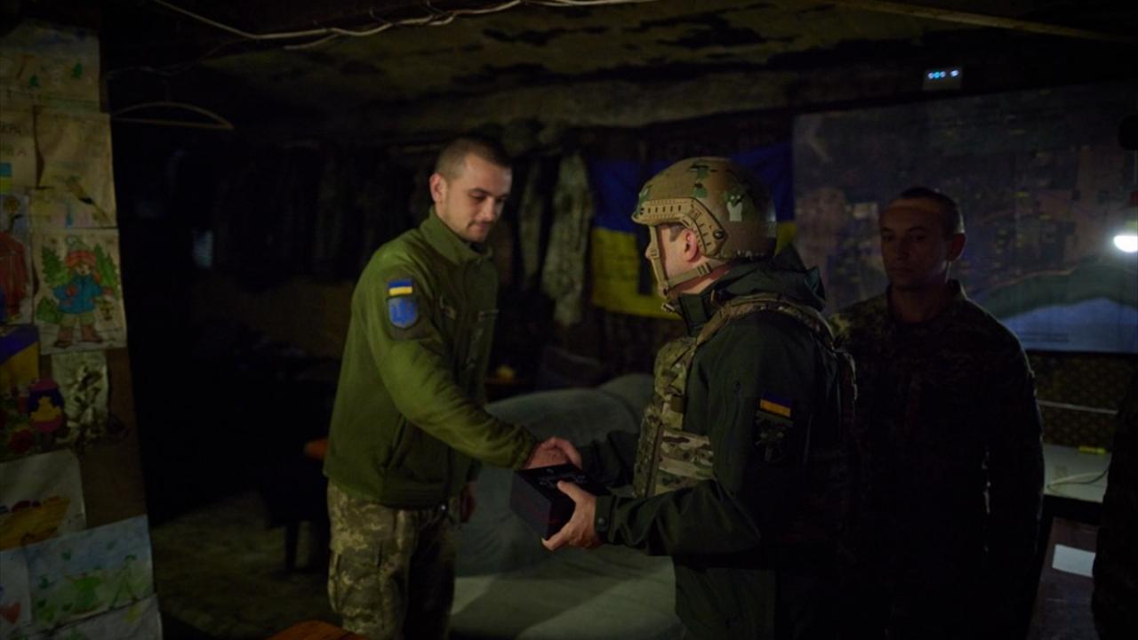Askerle sohbet ettikten sonra onlara hediyeler veren Zelenskiy, "Hizmetiniz için teşekkürler. Vatanımızı hakkıyla savunuyorsunuz. Kendinize dikkat edin." ifadesini kullandı.