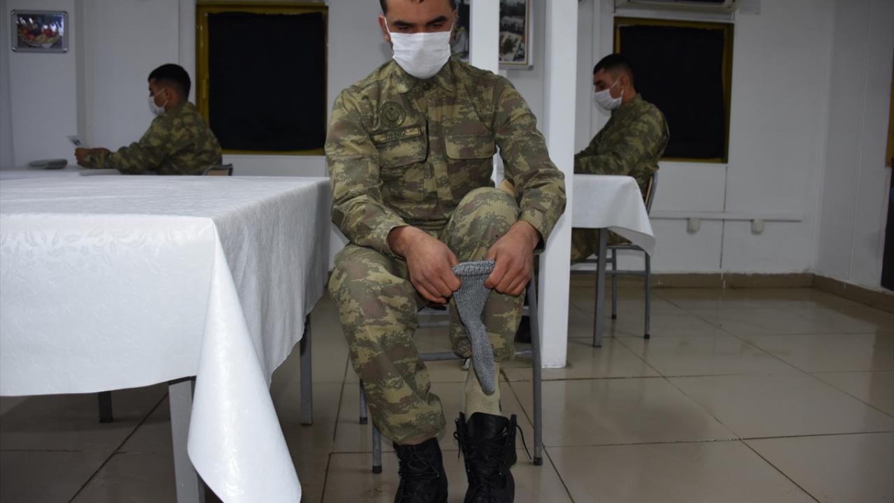 Yalova`nın Çiftlikköy ilçesinde yaşayan Zeliha Barlas`ın 100`ü aşkın yaşına rağmen yeni tip koronavirüsle mücadele sürecinde el emeği göz nuru ile ördüğü rengarenk 115 çift yün çorap ve duygularını aktardığı mektubun bulunduğu paket, Kureşin Tepe Üs Bölgesindeki askerlere ulaştırıldı.