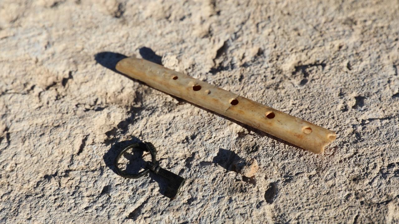 Diyarbakır'da Roma İmparatorluğu döneminde "askeri yerleşim" olarak kullanılan 3 bin yıllık Zerzevan Kalesi'ndeki kazılarda, 1600 yıllık kemik flüt ve bronz anahtarlı yüzük bulundu.