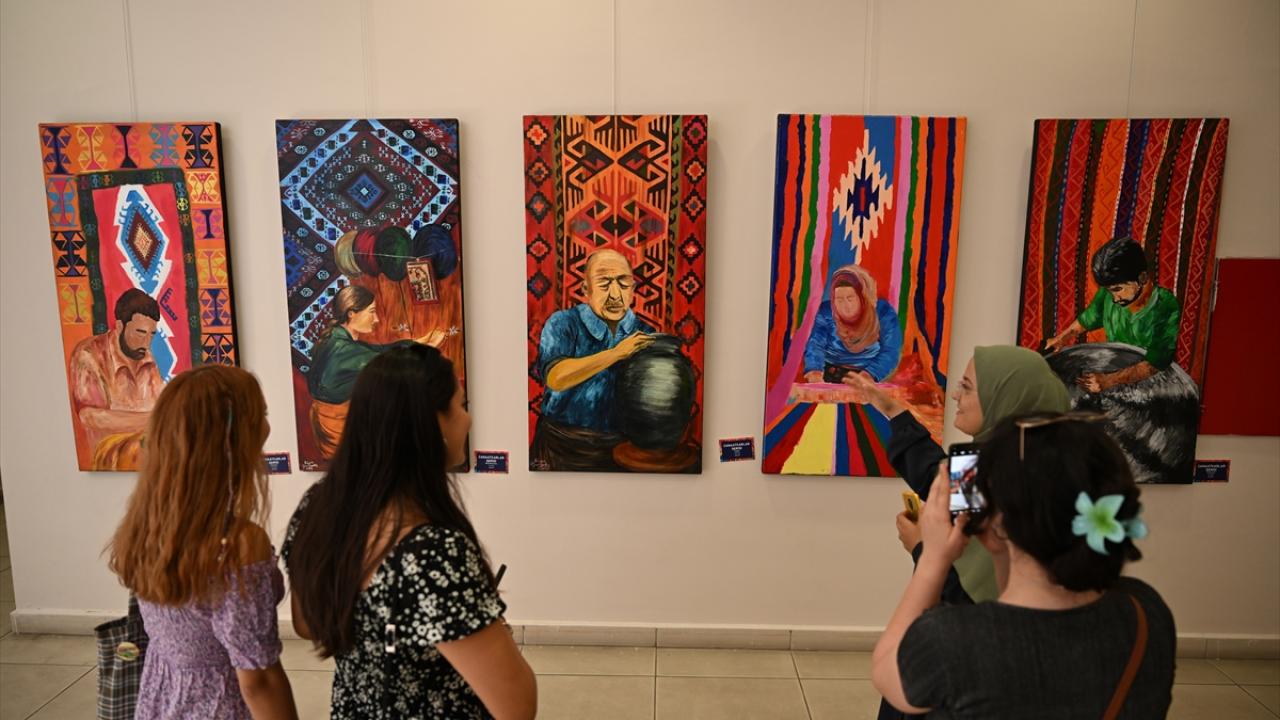 Zeugma Mozaik Müzesi`nin sergi salonunda açılan Huzme Sergisi`nde kentin tarihi dokusu ve kültürel değerlerinin kumaşlarla resmedildiği 22 eser yer alıyor.