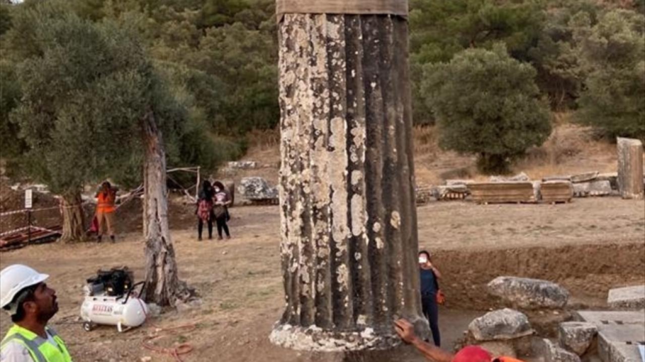 Parçaları yapıştırılan ve sağlamlaştırılan kuzey cephenin doğu kanadına ait iki sütunun alt tamburlarını, kaideleri ile orijinal yerlerine koyduklarını dile getiren Kızıl, ilerleyen süreçte geriye kalan sütunları da üst yapılarıyla ayağa kaldıracaklarını ifade etti.
